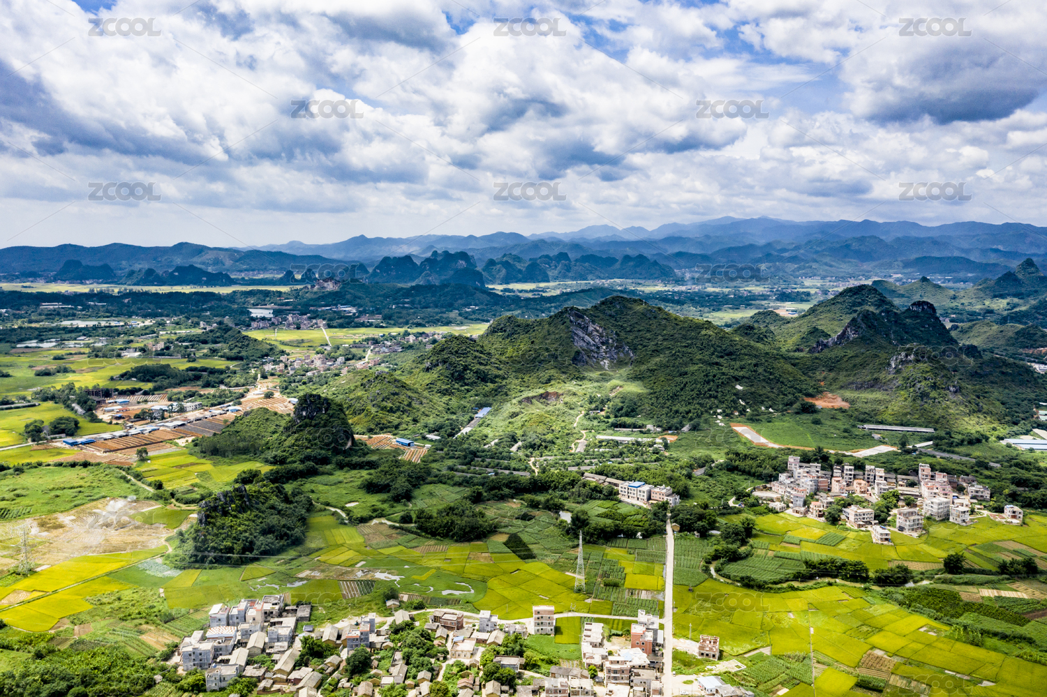 广西桂林桃花岩喀斯特地貌田园风光航拍