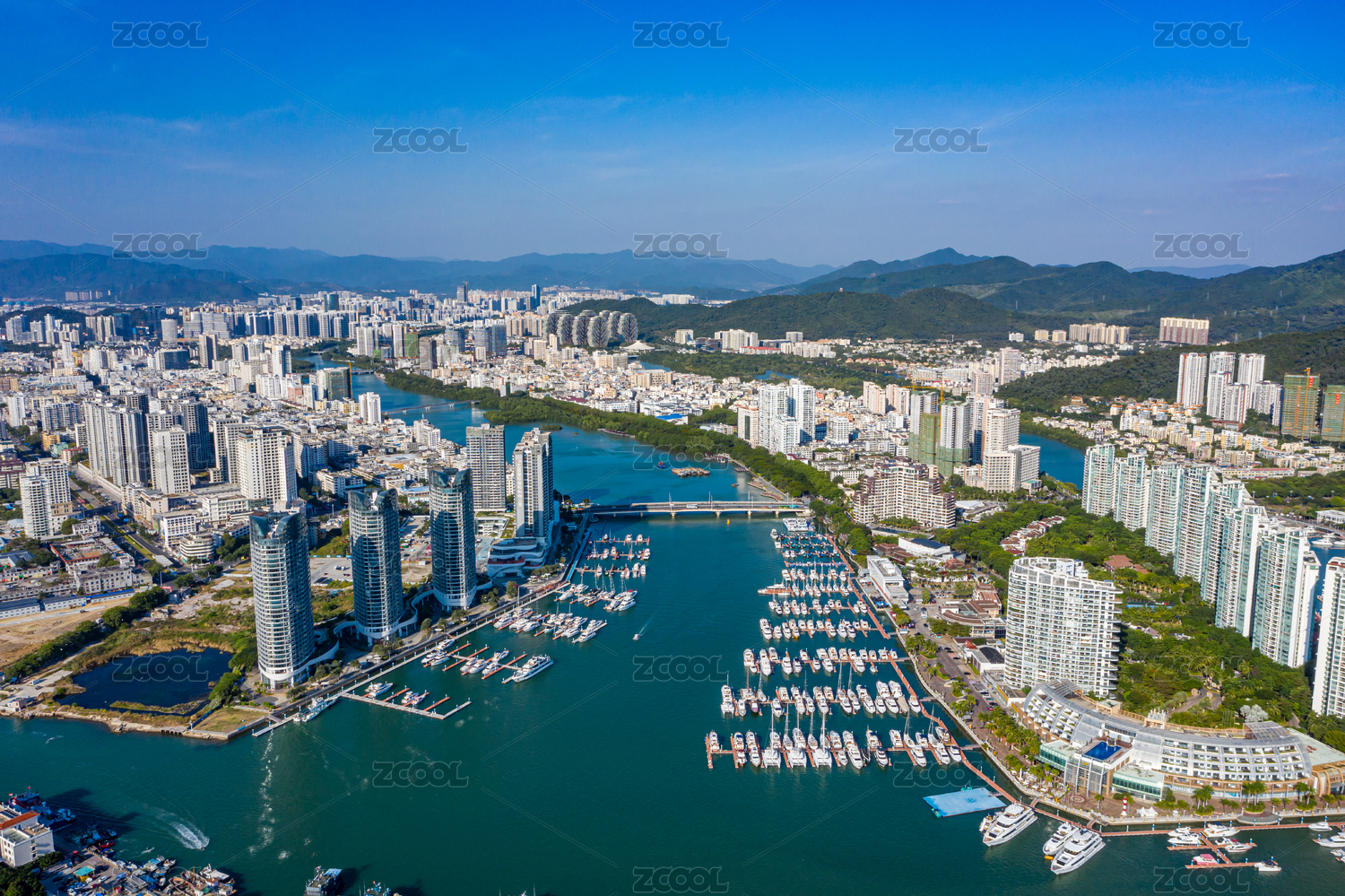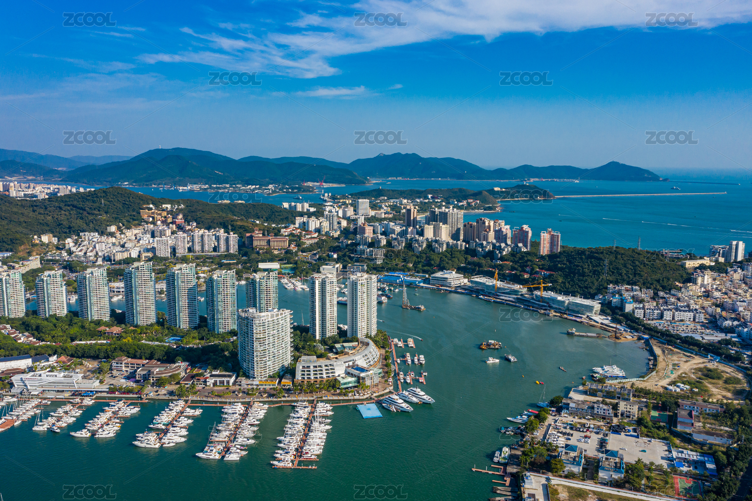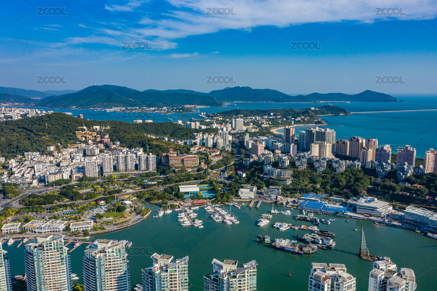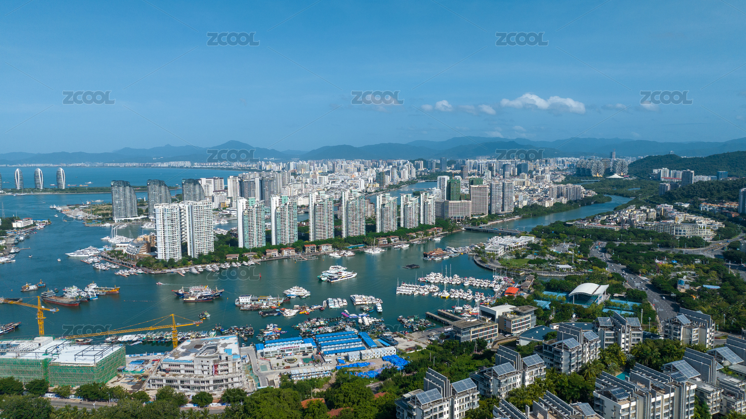 三亚三亚湾游艇码头及周边大东海城市风景航