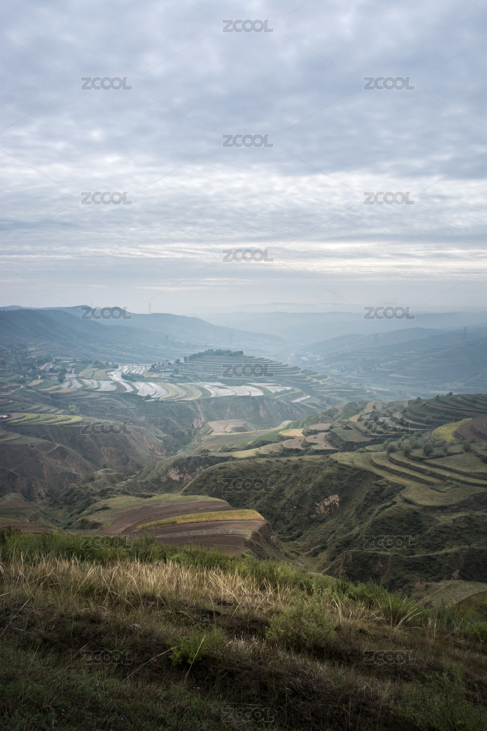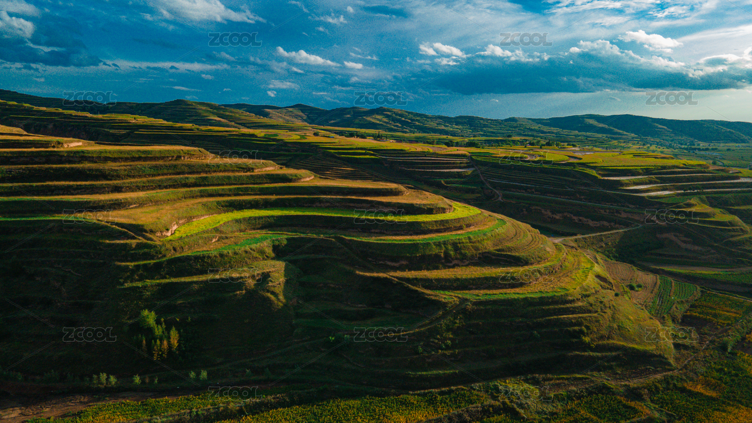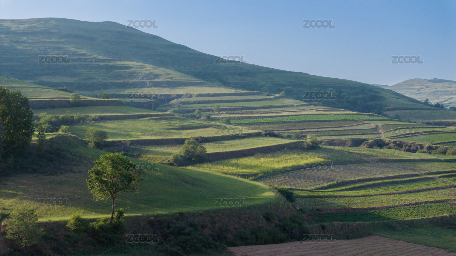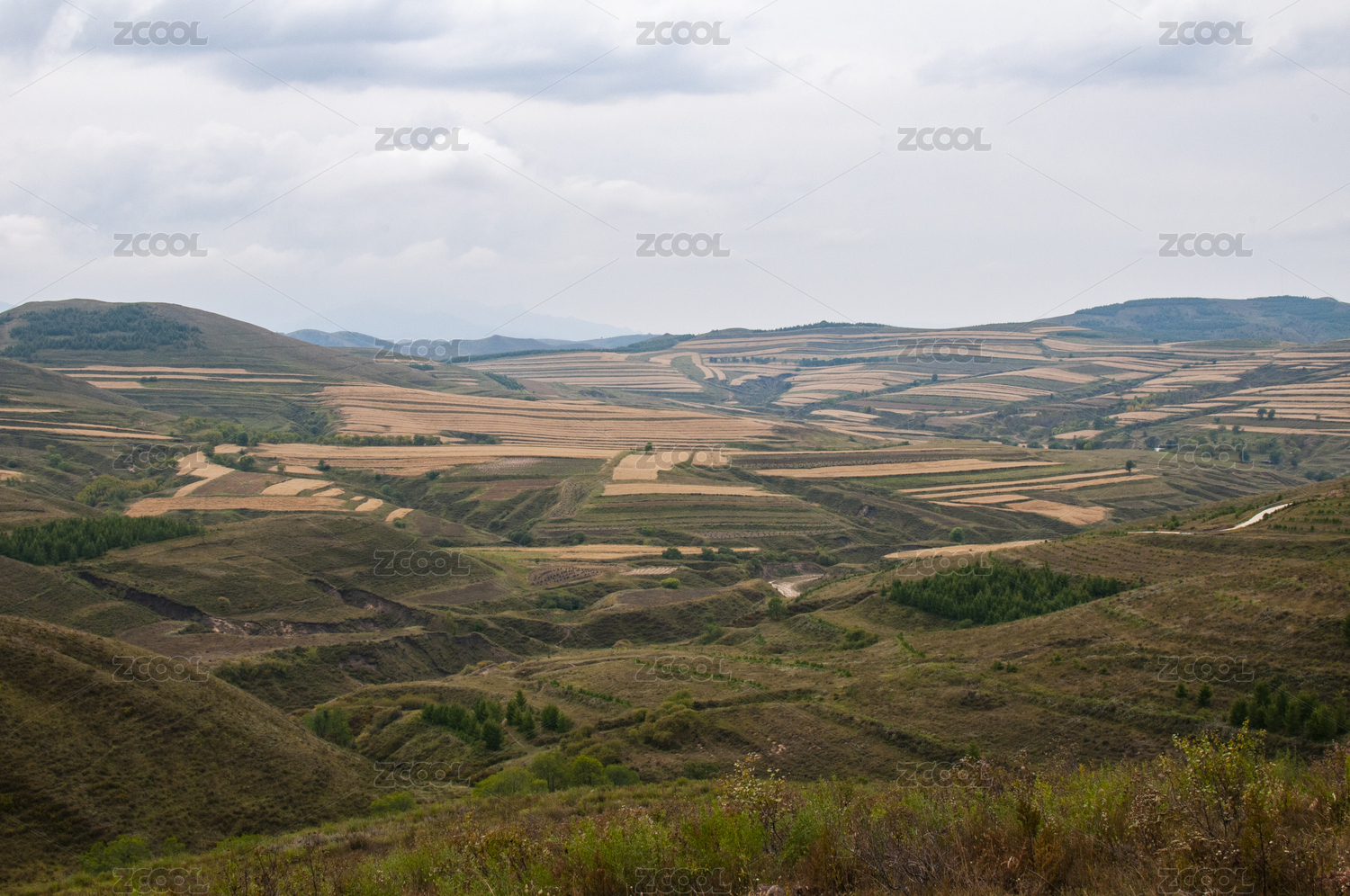 中国西部甘肃中部黄土高原山地梯田自然风光