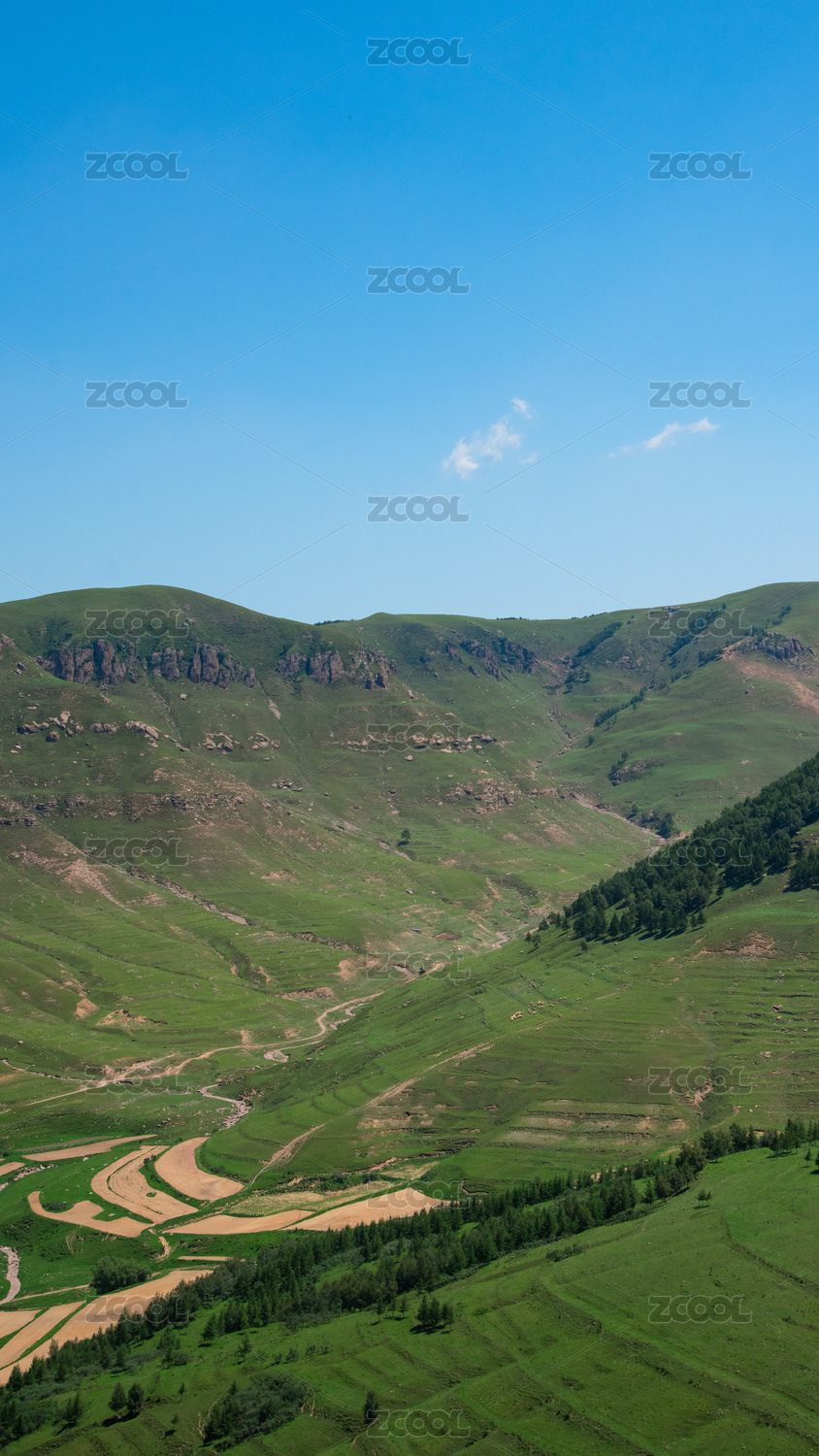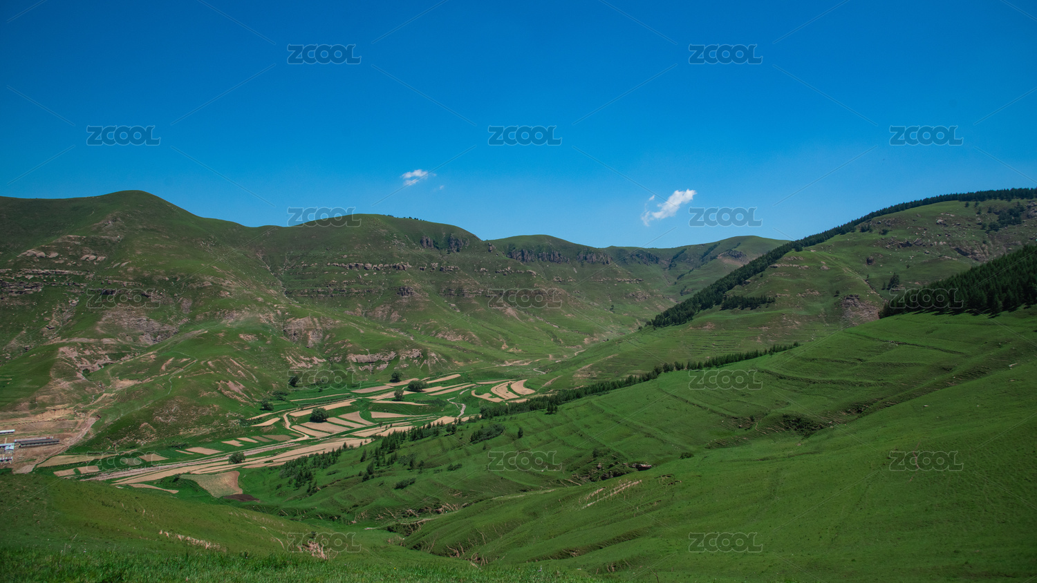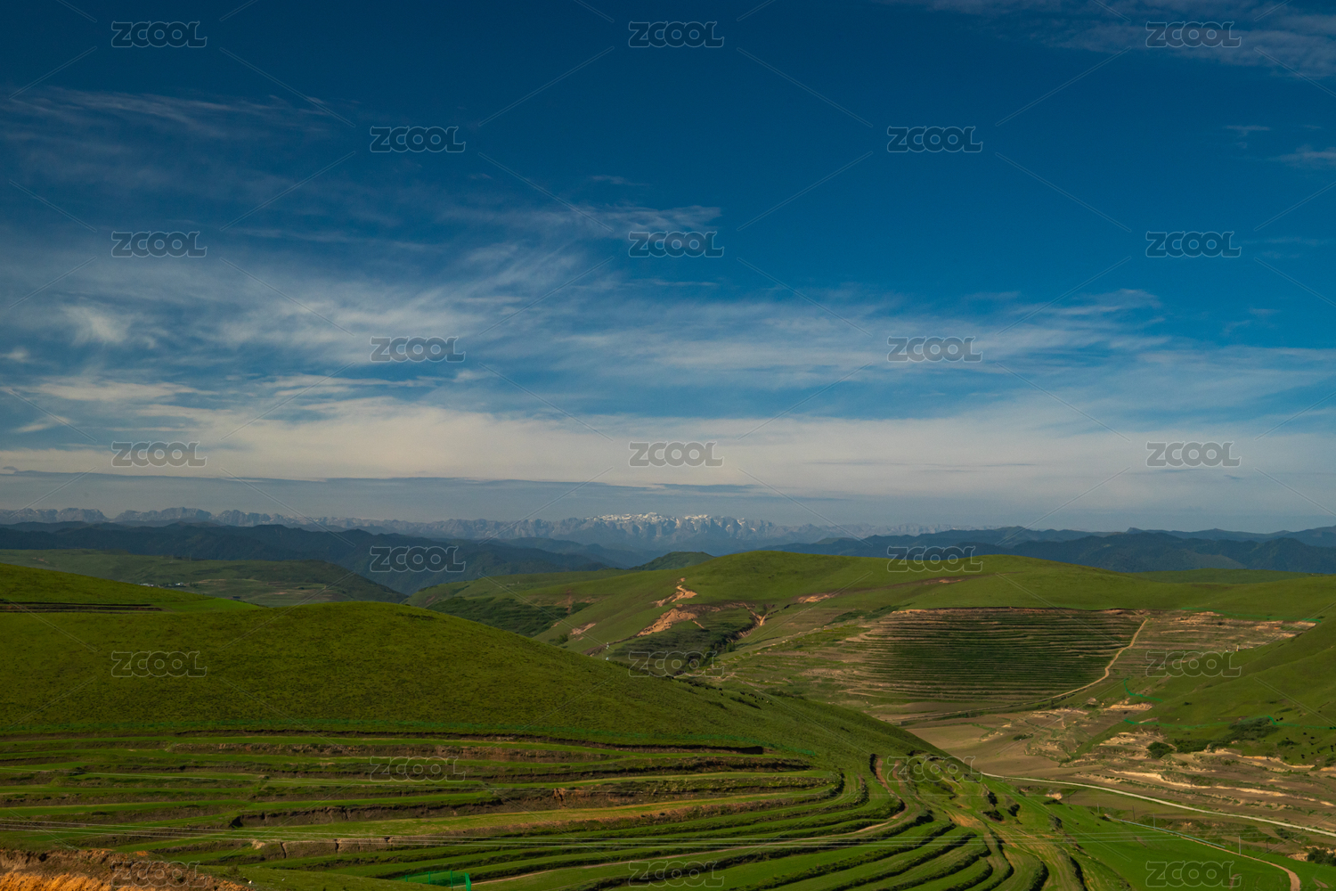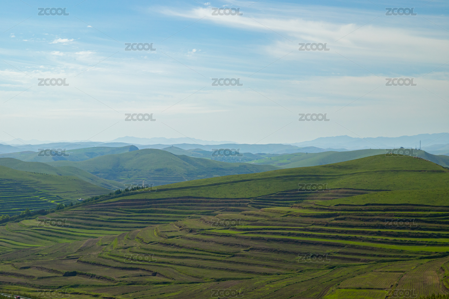 中国西部甘肃中部黄土高原山地梯田自然风光