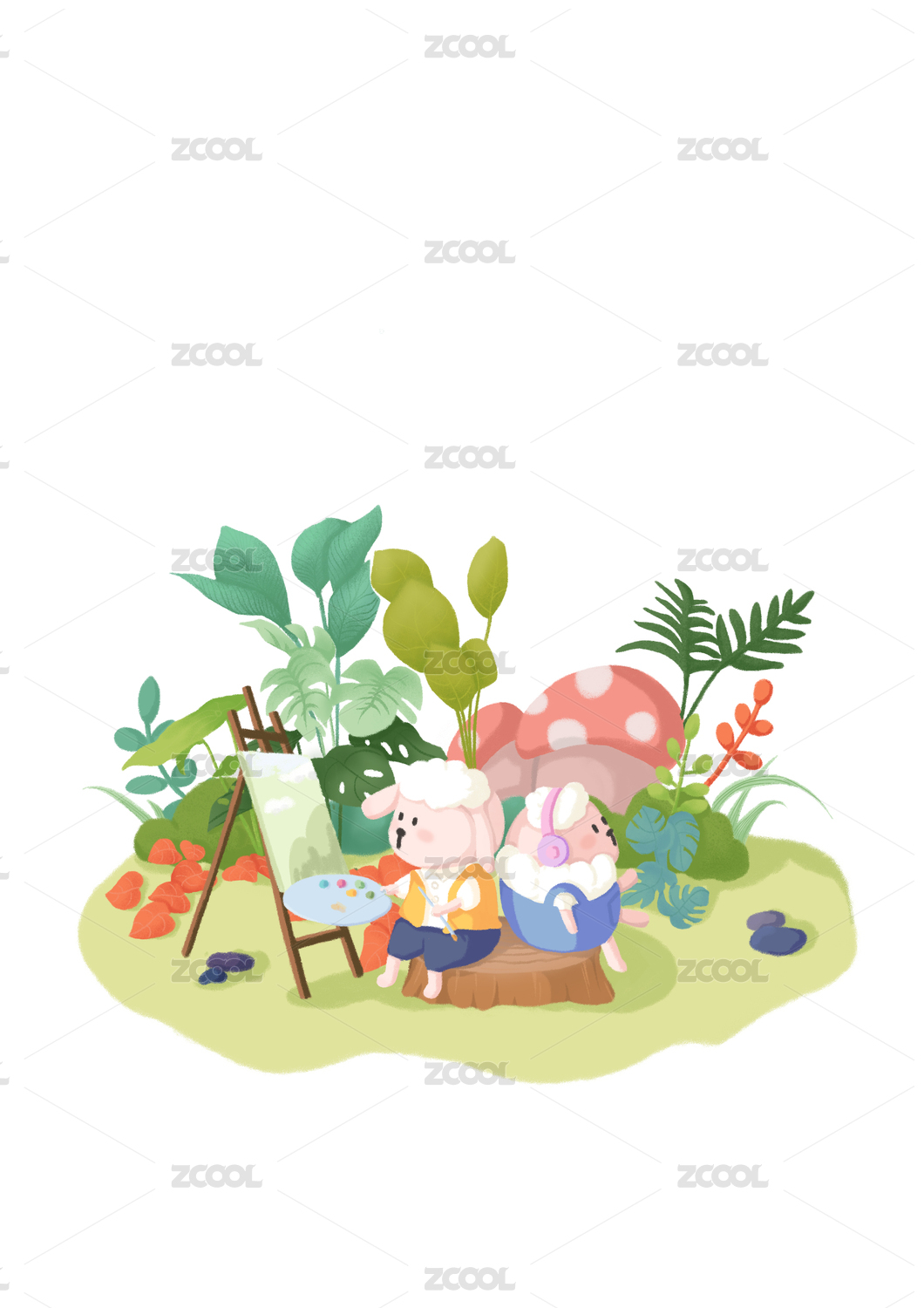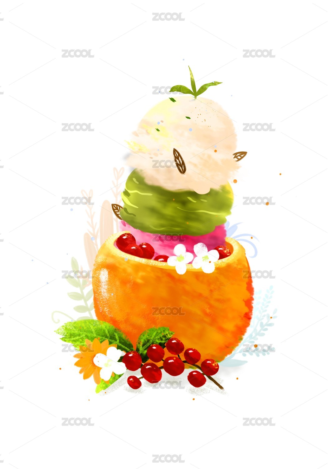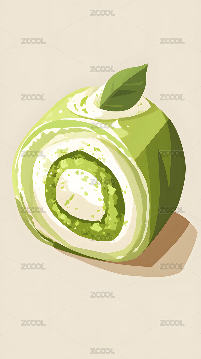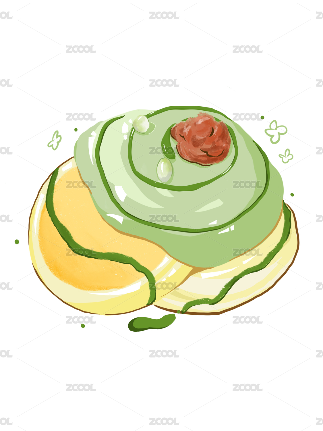 夏日清新可爱风格抹茶蛋卷儿童插画