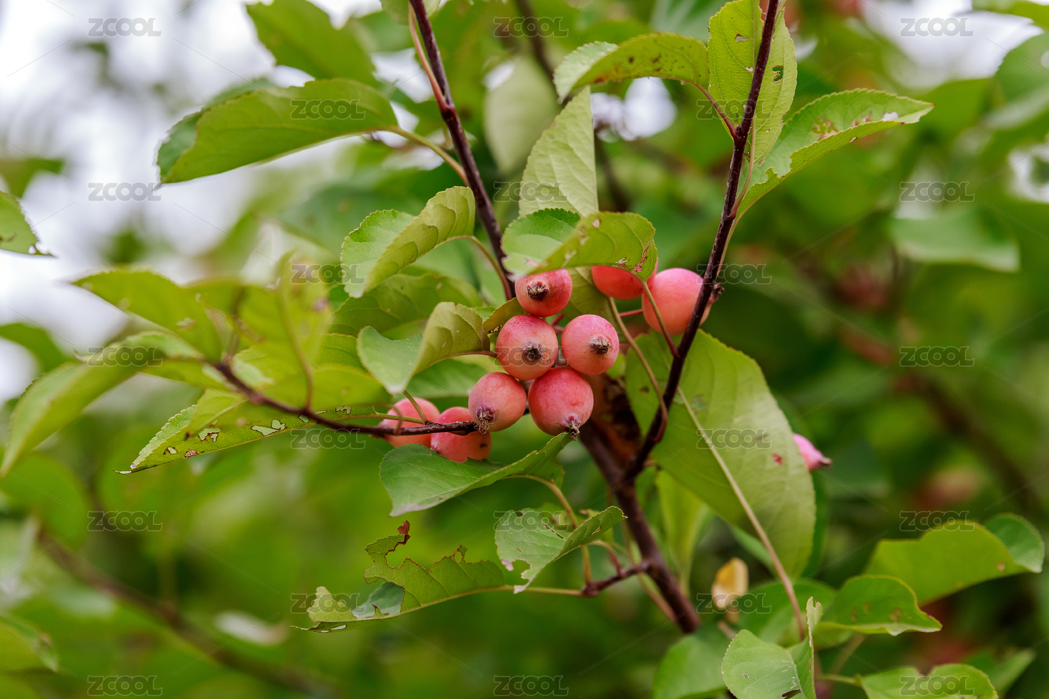 秋天枝头即将成熟的海棠果