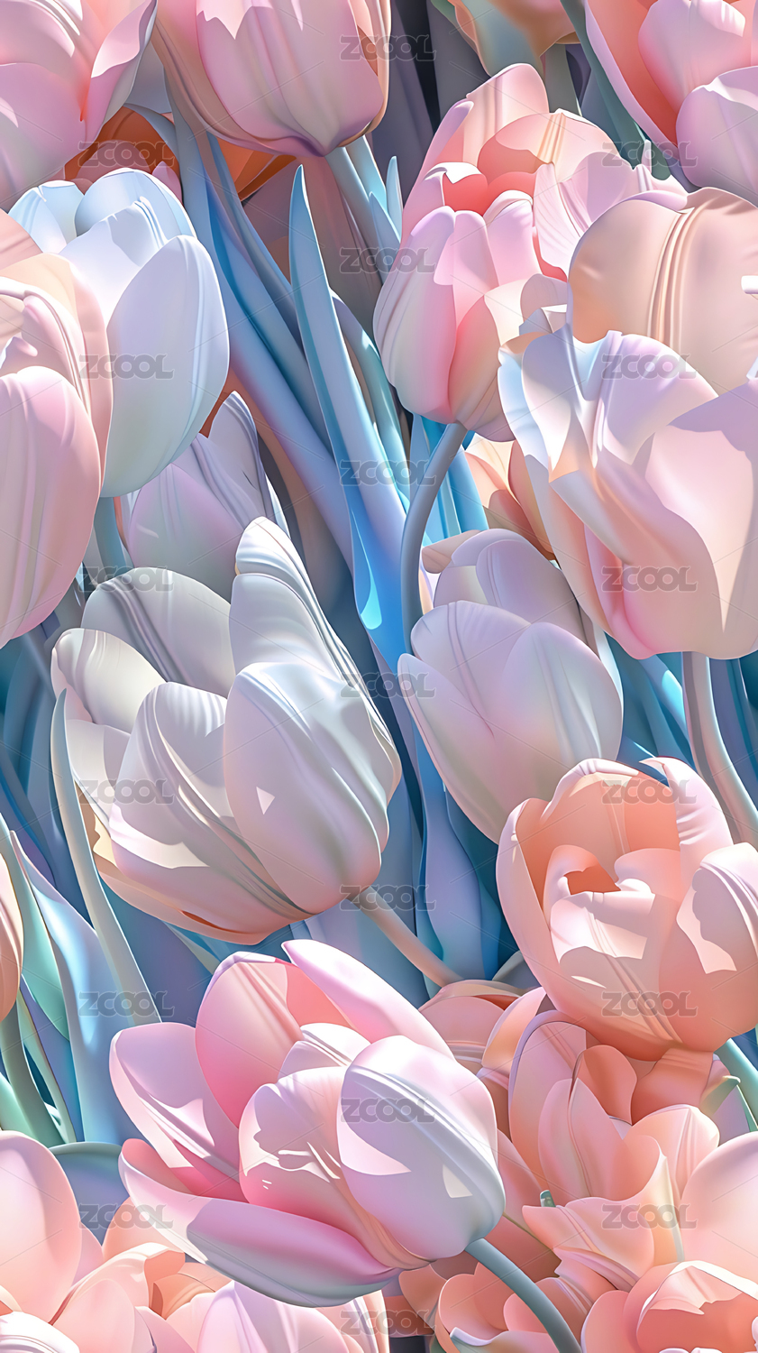 郁金香,梦幻,3d,丝绸,珠光,花,春天,植物,花瓣,自然