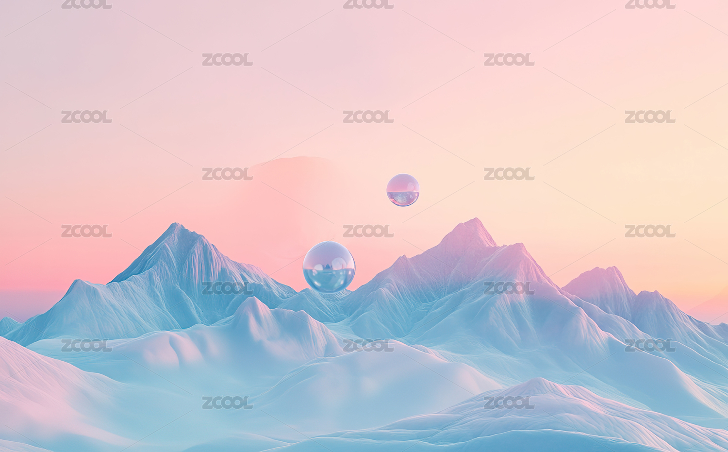 梦幻粉色山峦与漂浮球体