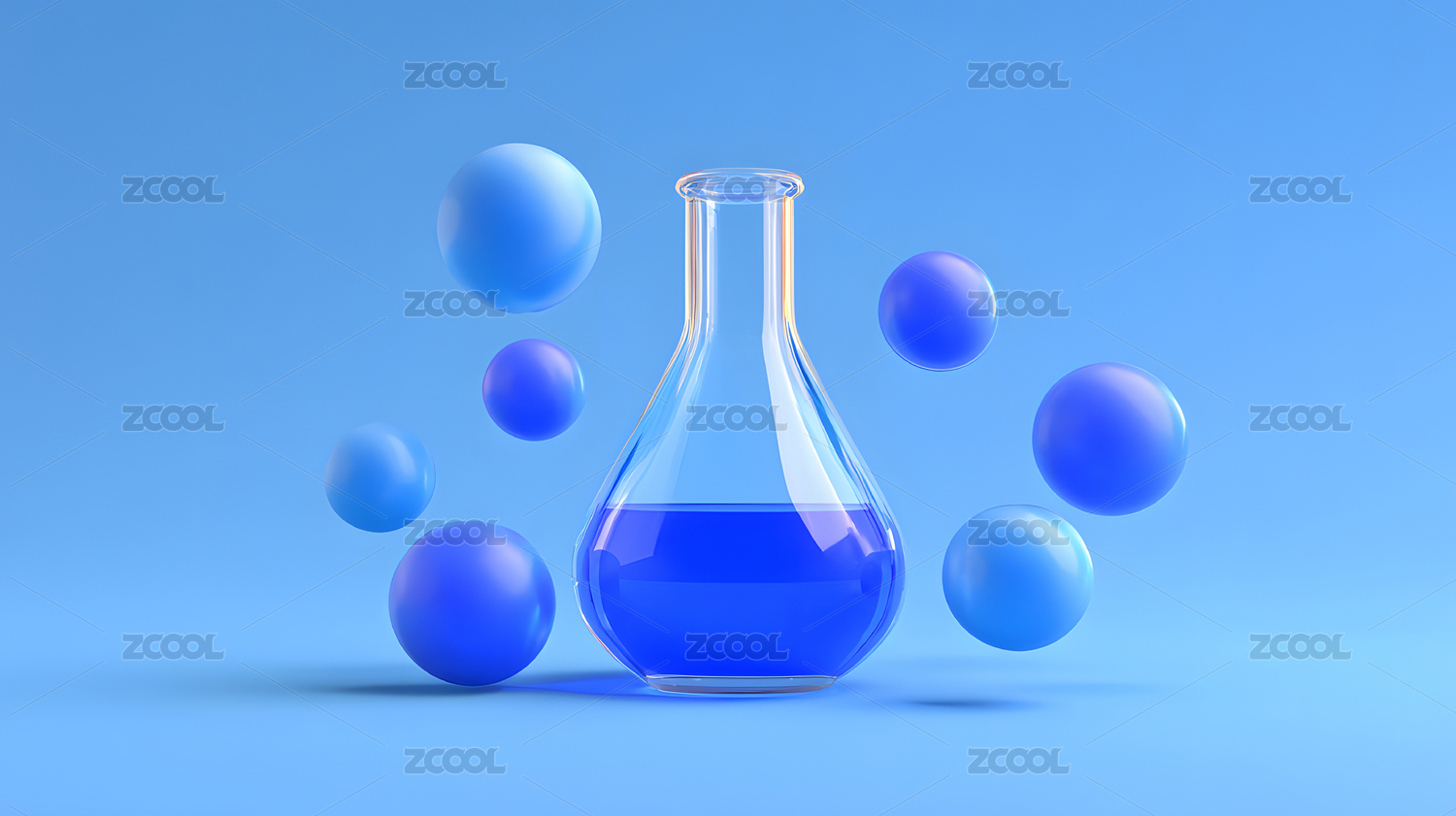 蓝色液体烧杯悬浮实验场景
