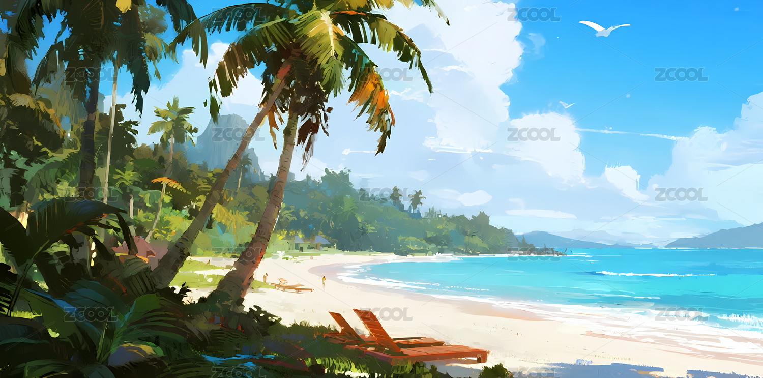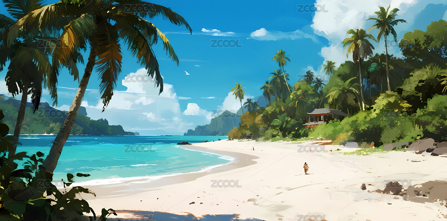 热带海滩与椰林风光