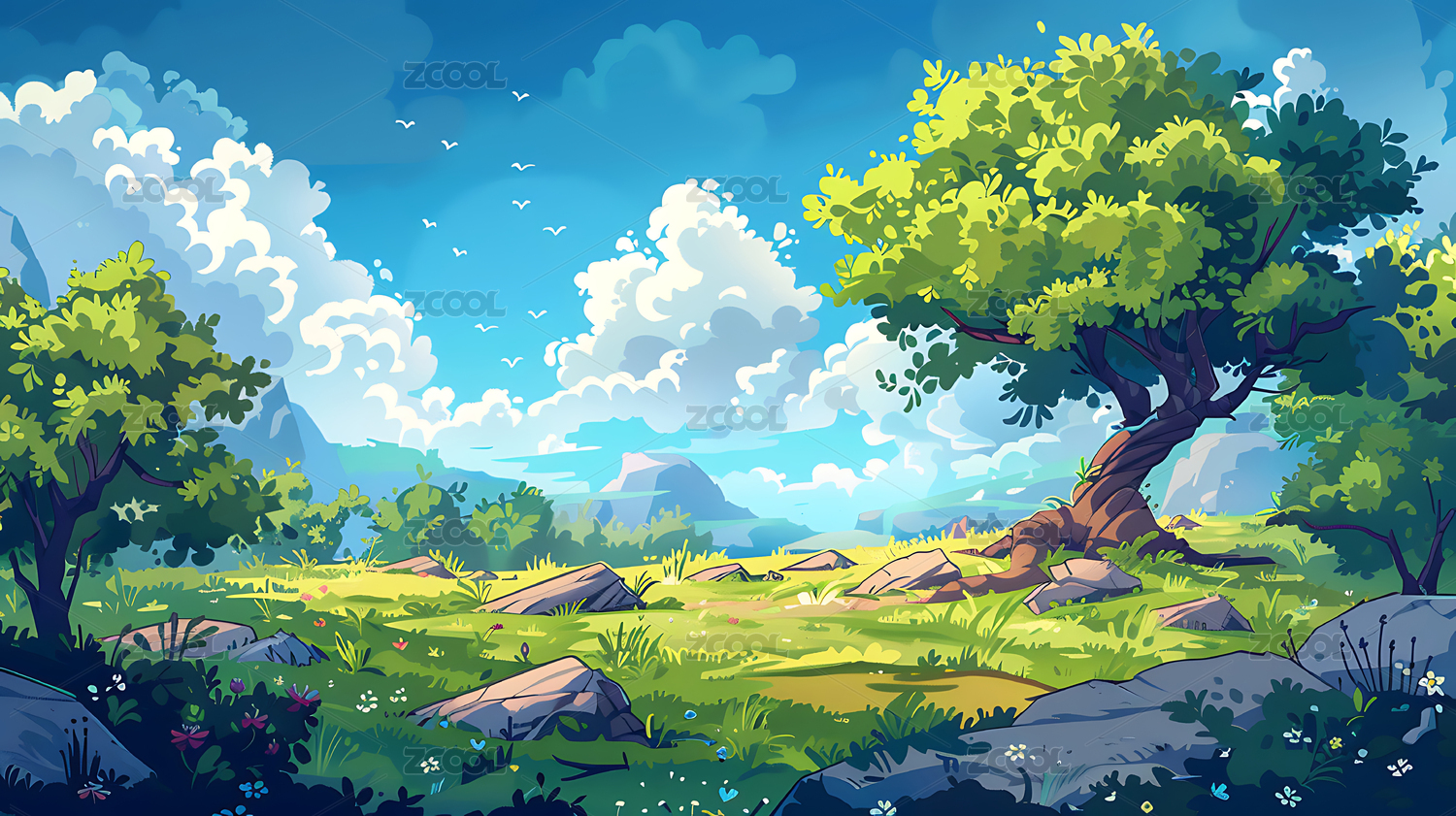 插画,卡通,游戏,动画,手游,背景,风景,自然,植物,场景