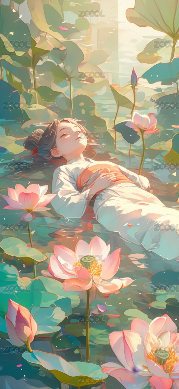 荷叶上的女孩