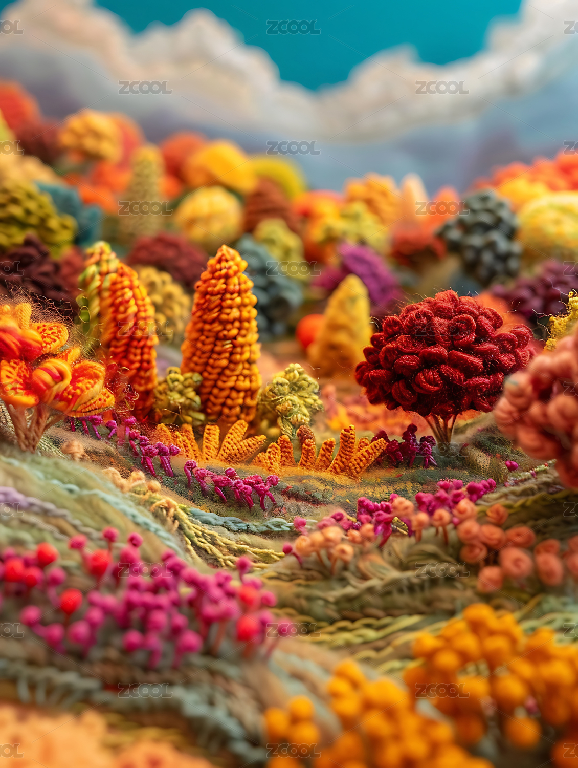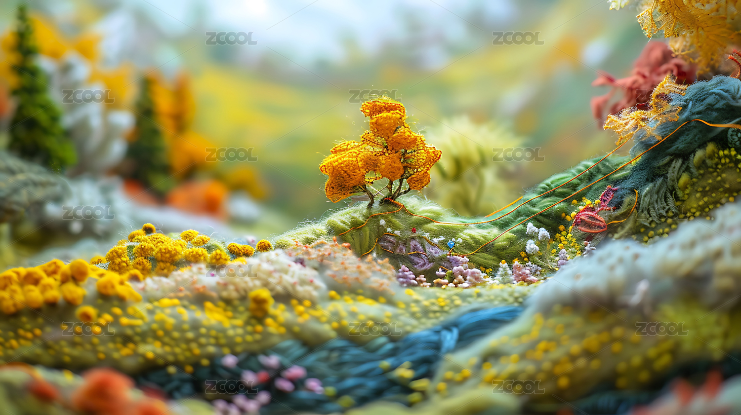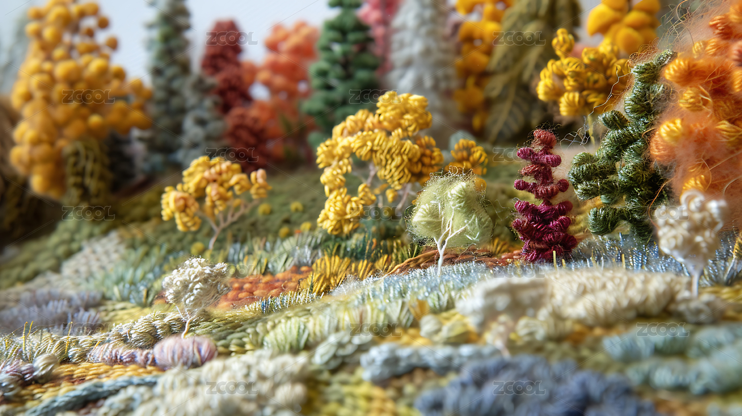 毛线,编织,风格,风景,户外,房子,植物,自然,枫叶,落叶