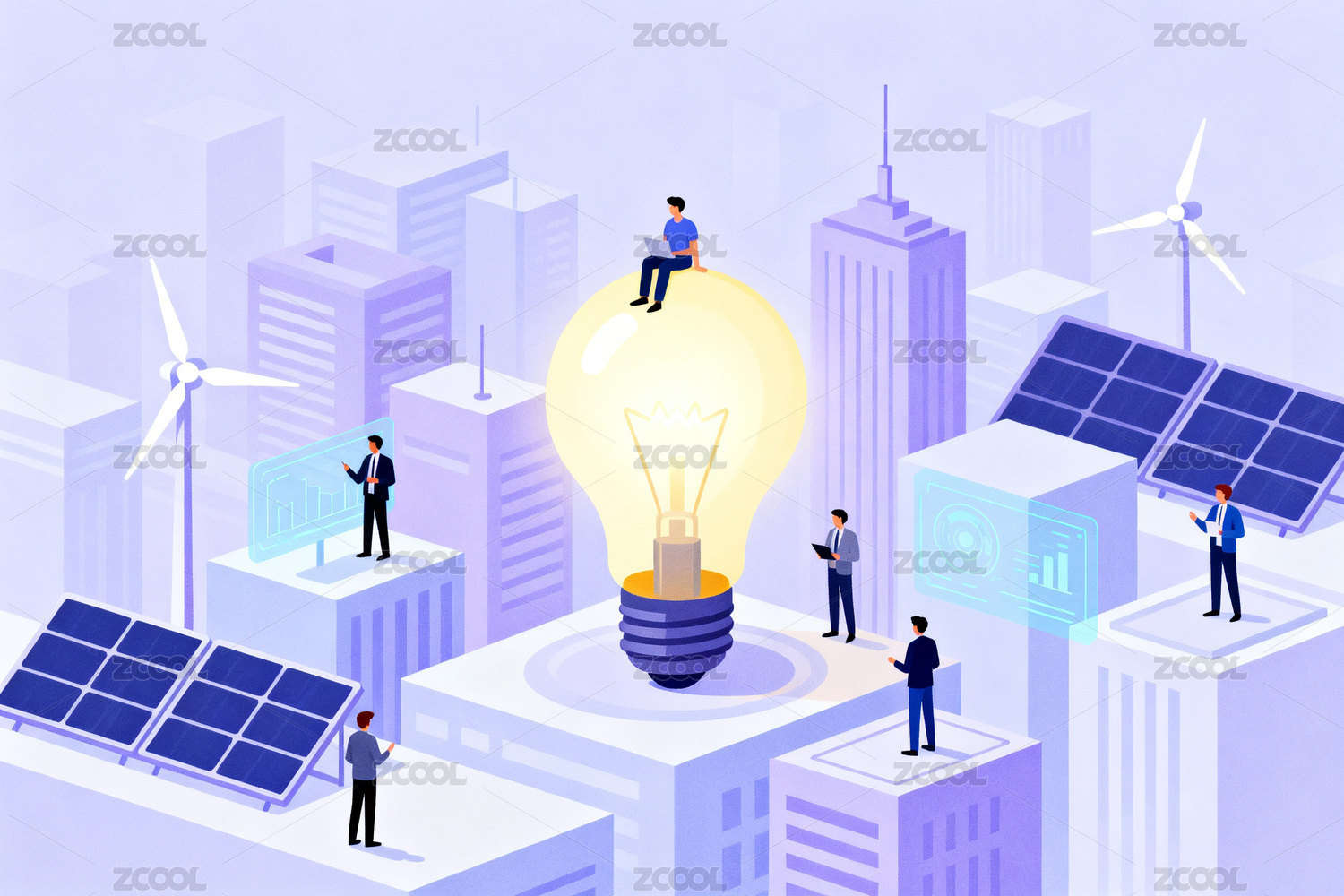 未来城市清洁能源科技插画