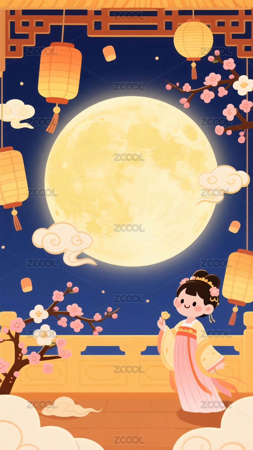 中秋玉兔嫦娥月圆古风ai扁平插画