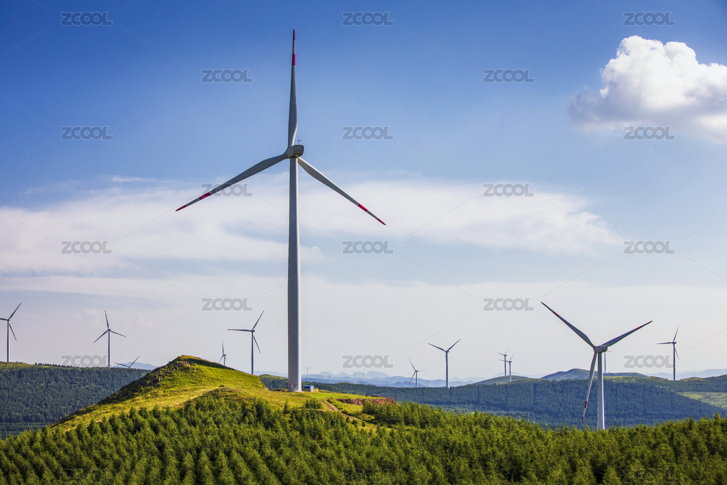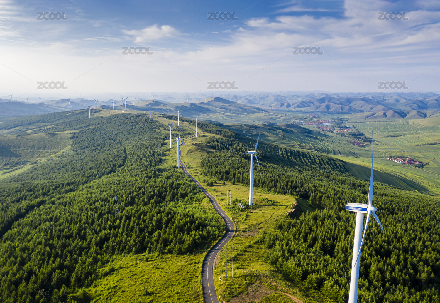 航拍冰山梁山顶风车森林自然风景