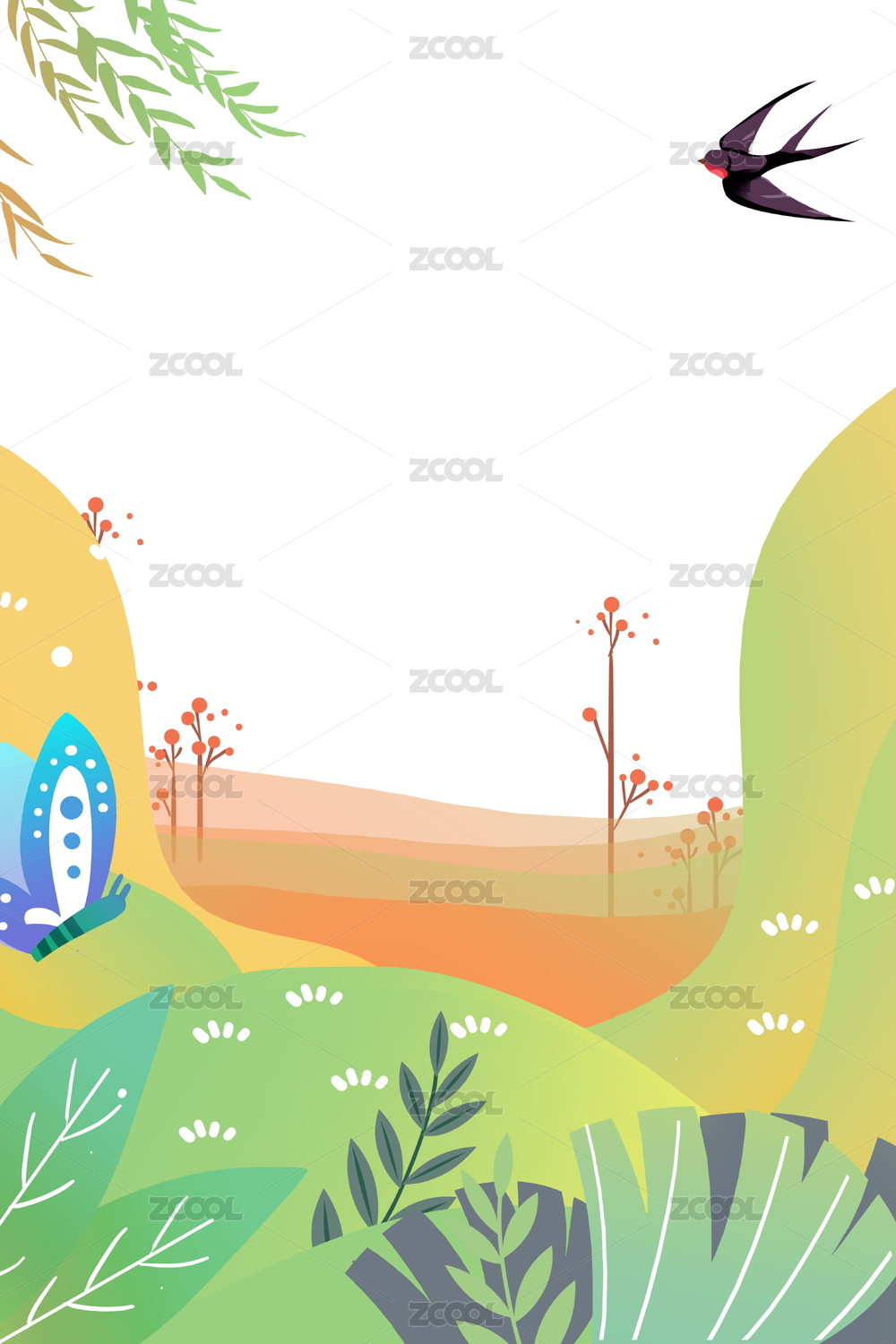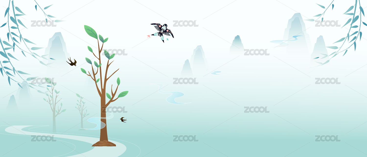 春天树叶和燕子