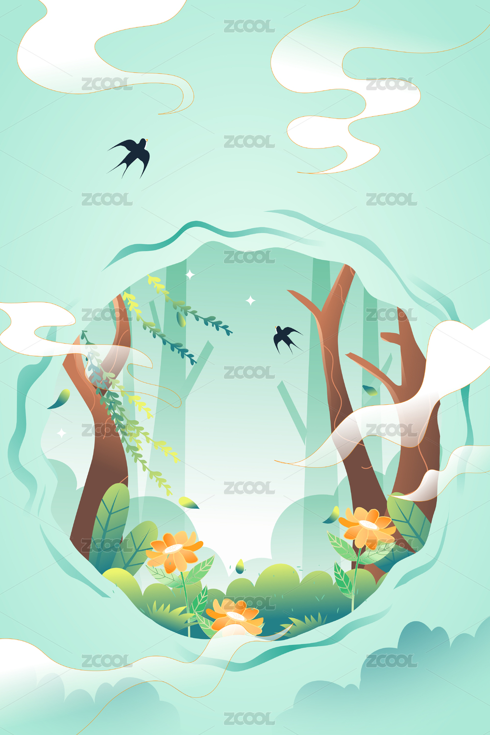 春天立春节气绿色场景插画