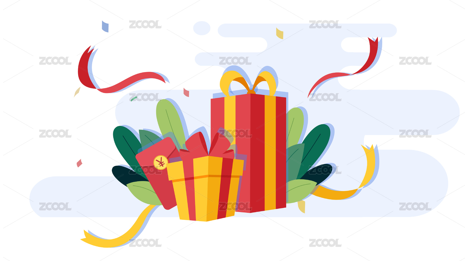 卡通礼盒促销抽奖互联网金融收益理财插画