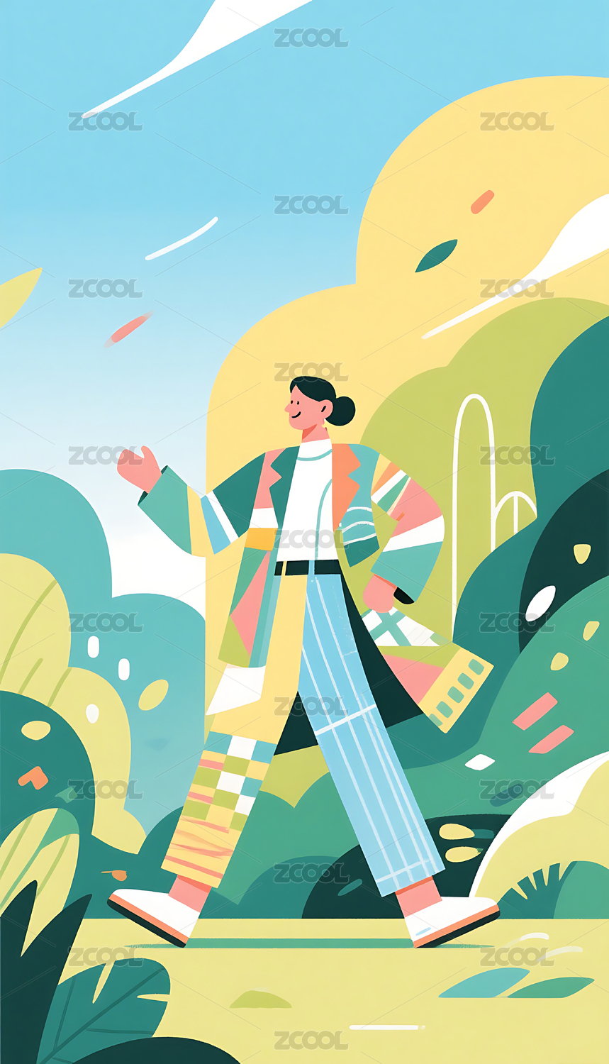 抽象艺术几何图形人物自然户外插画