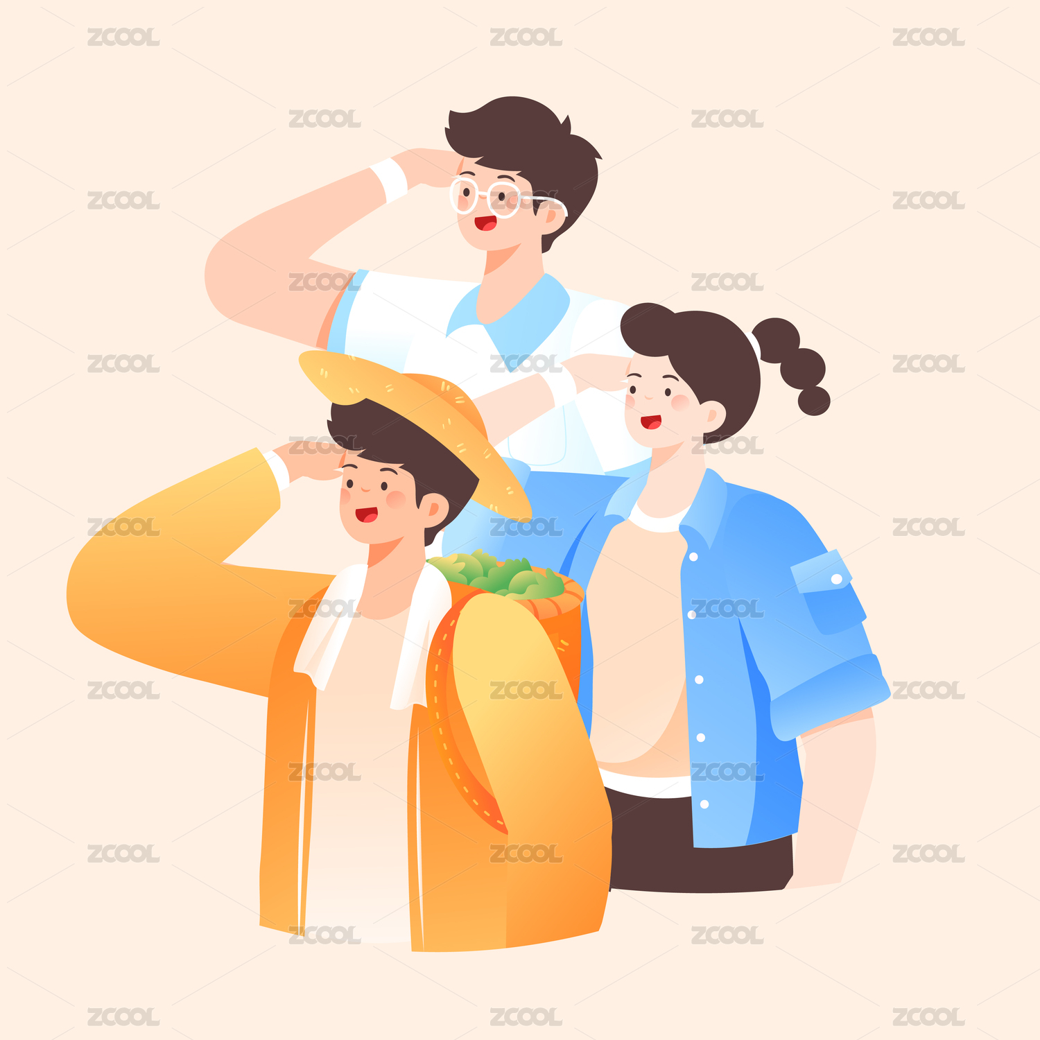 五四青年节青春活泼快乐年轻人跳跃庆祝插画