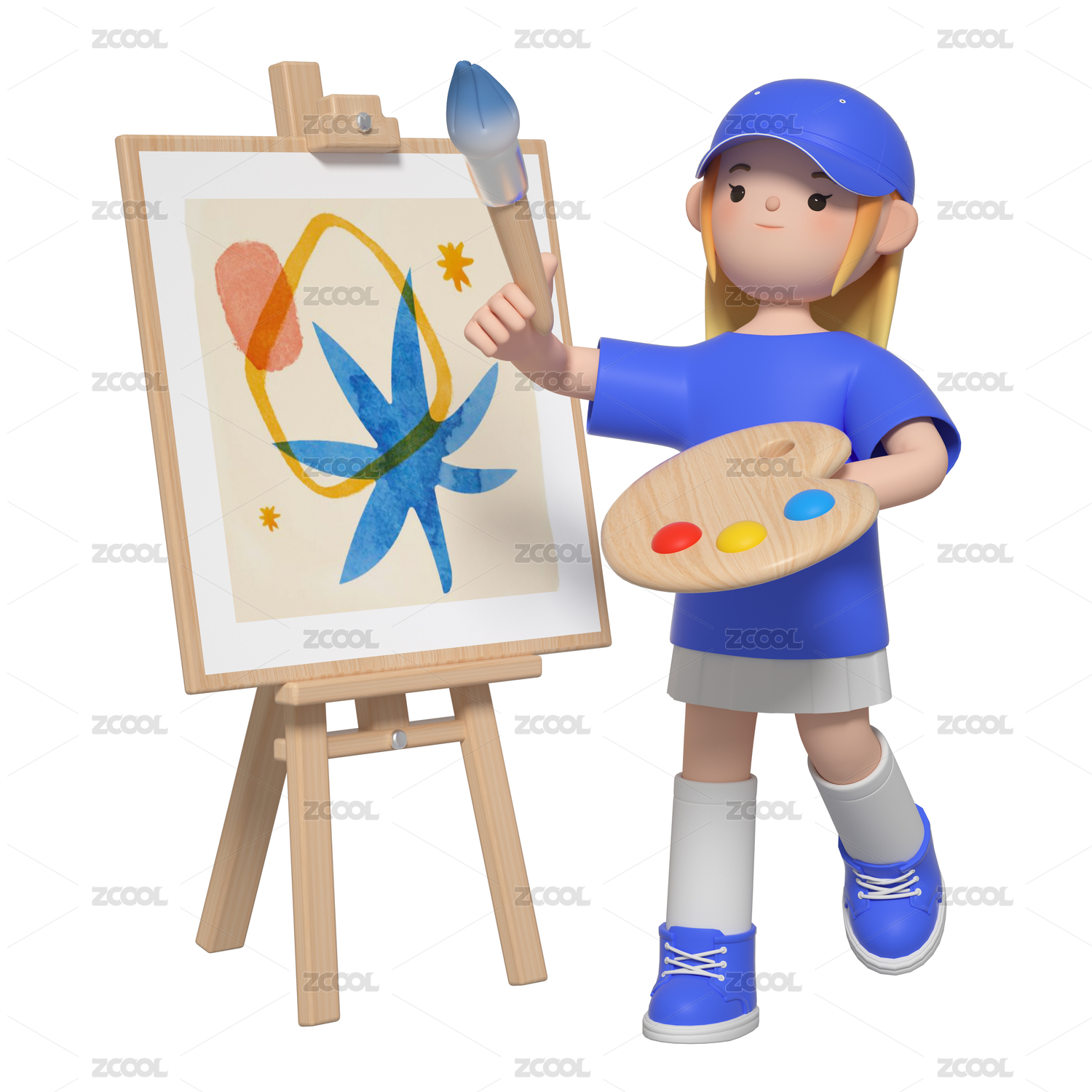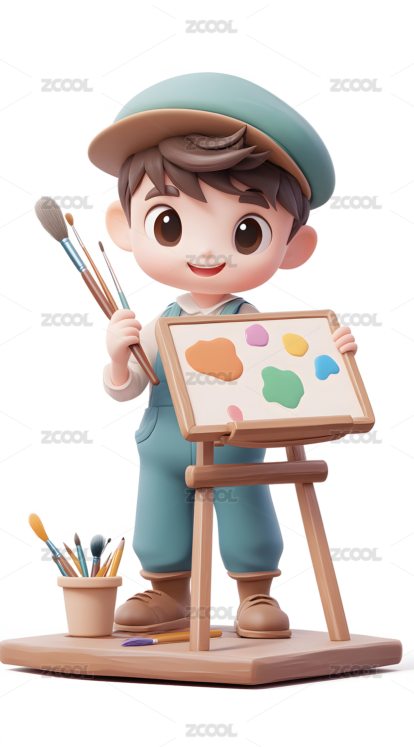 3D渲染的卡通绘画少儿