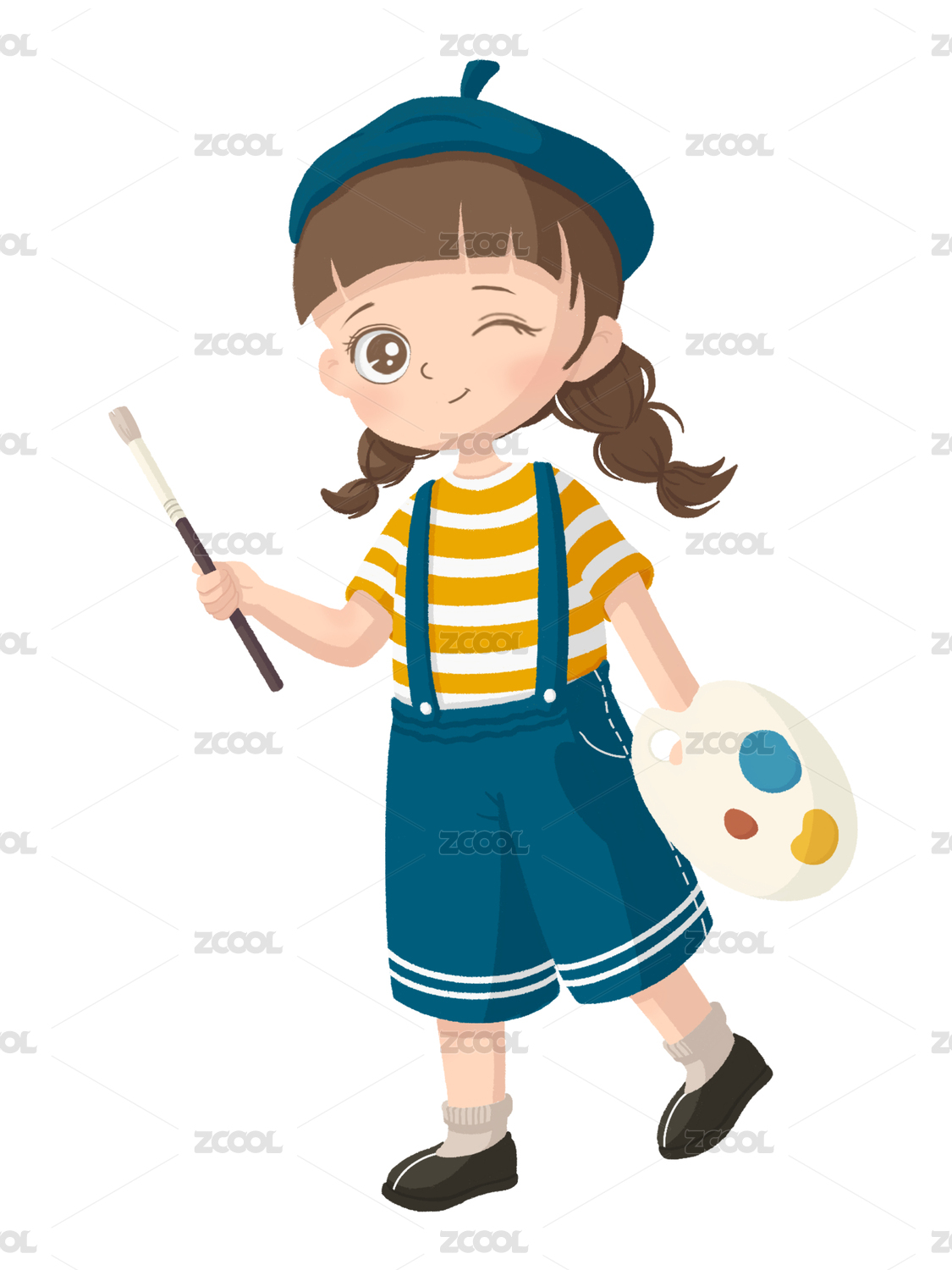 拿着画板画笔的女孩