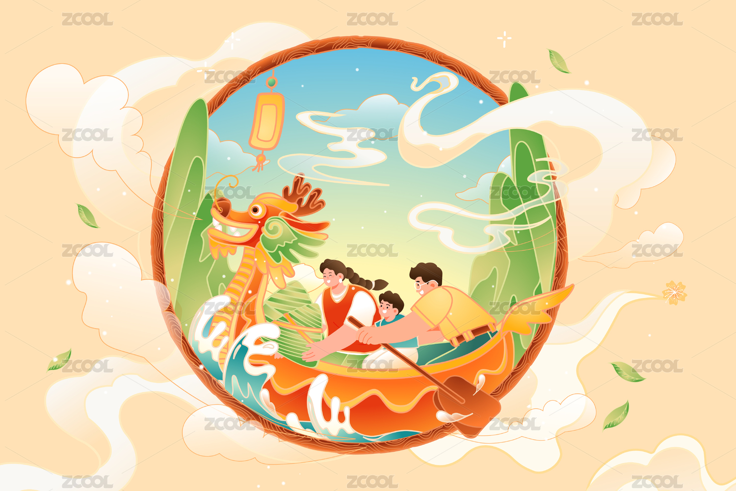 端午节龙舟家人矢量插画