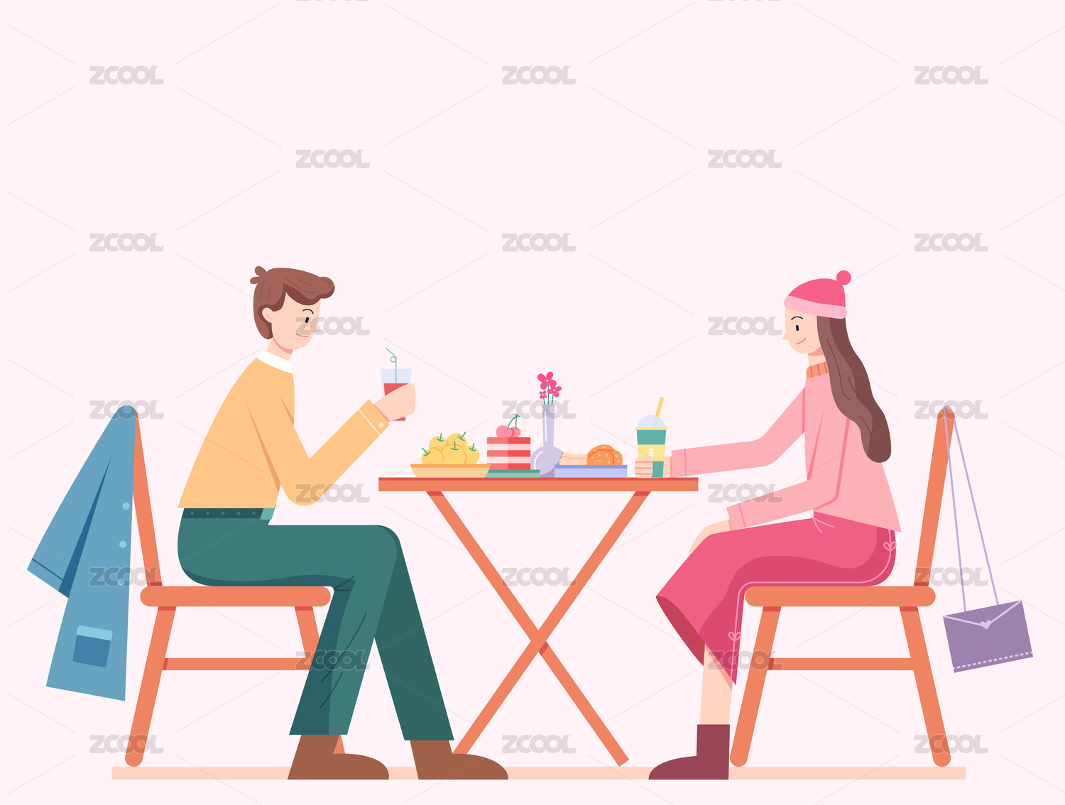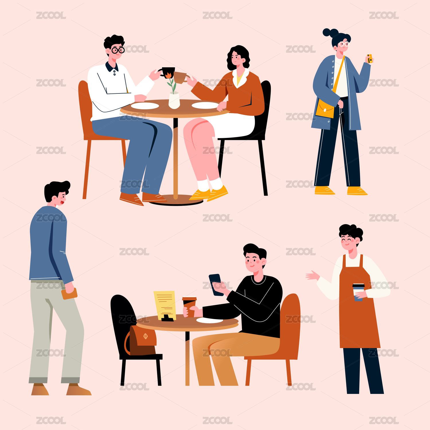 时尚室内咖啡厅高级精致多人扁平风噪点插画