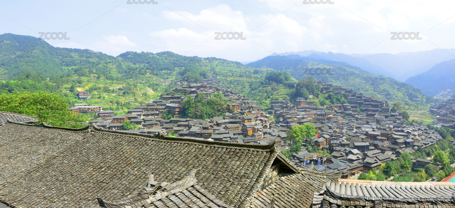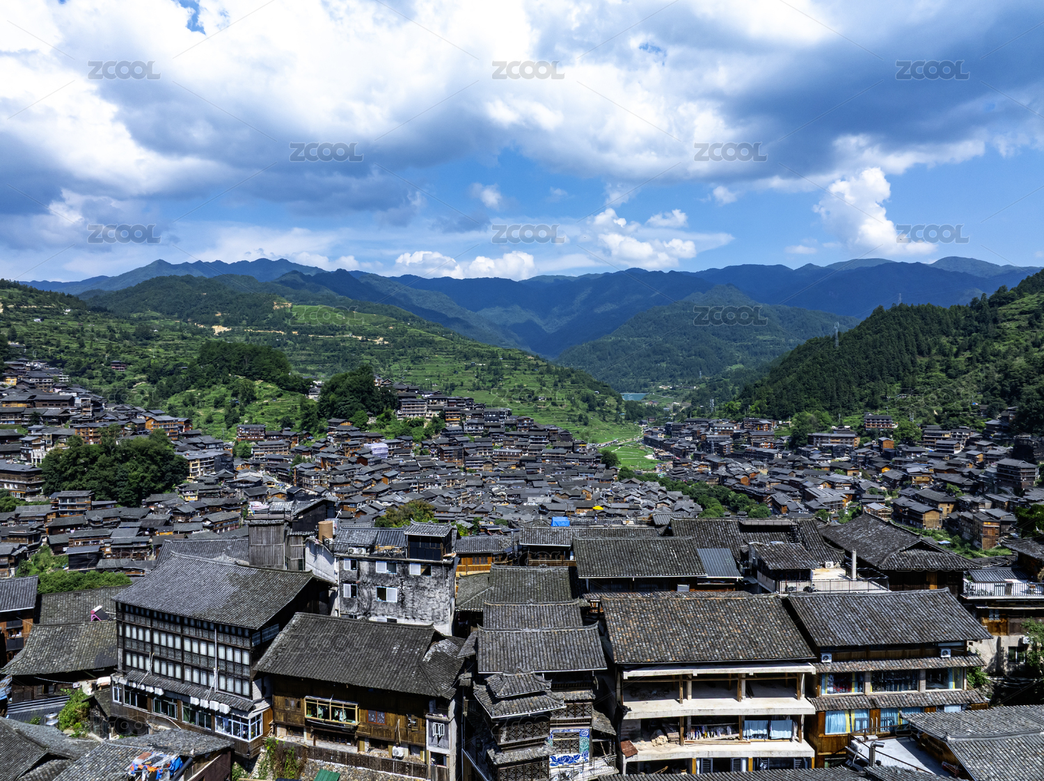 中国贵州,苗寨,千户苗寨,俯瞰图,全景