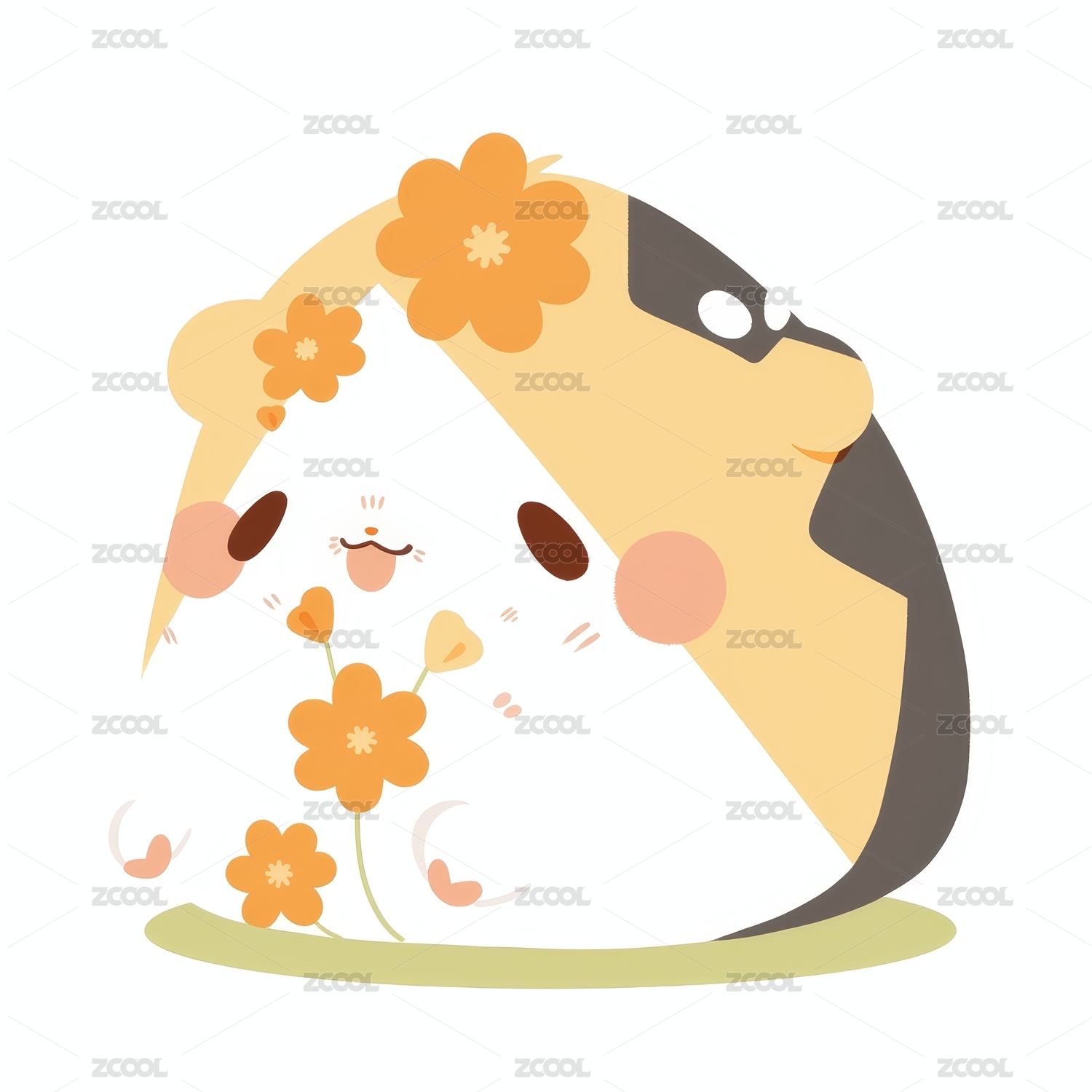 卡通动物戴花