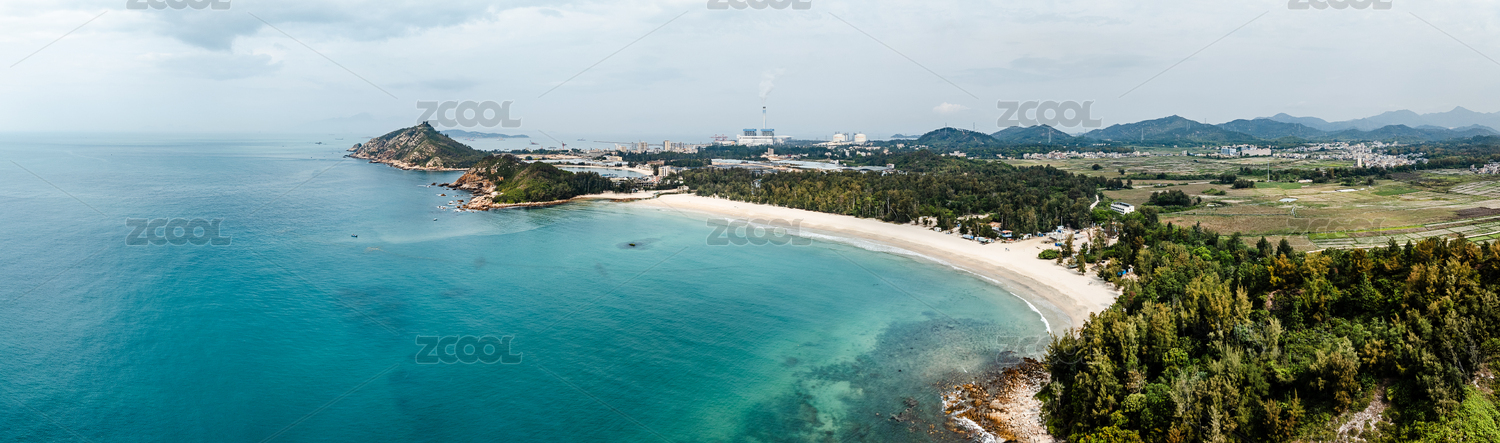 中国广东汕尾红海湾施公寮风车岛海岸线风光全景