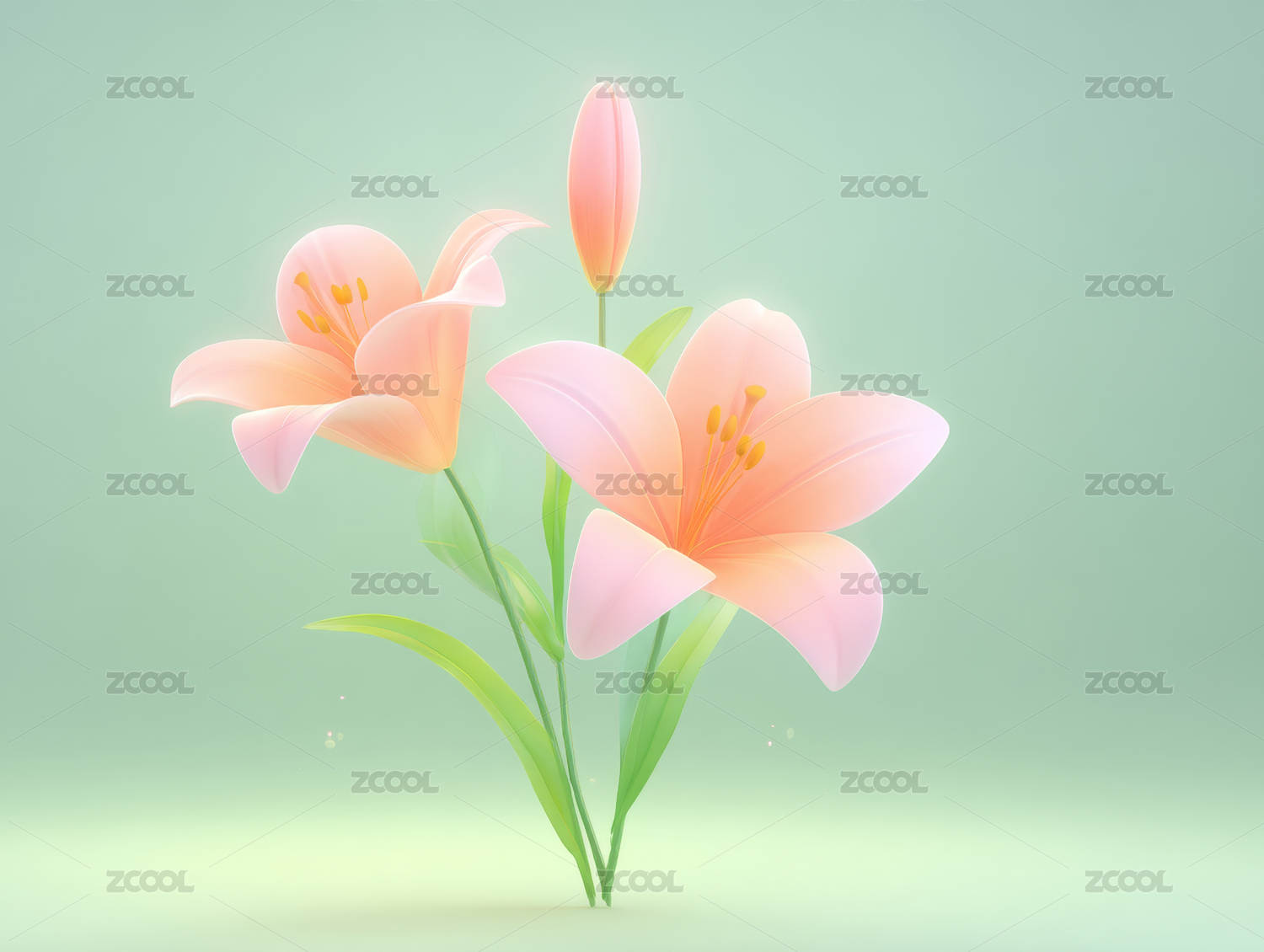 橙色百合花束简约自然风格