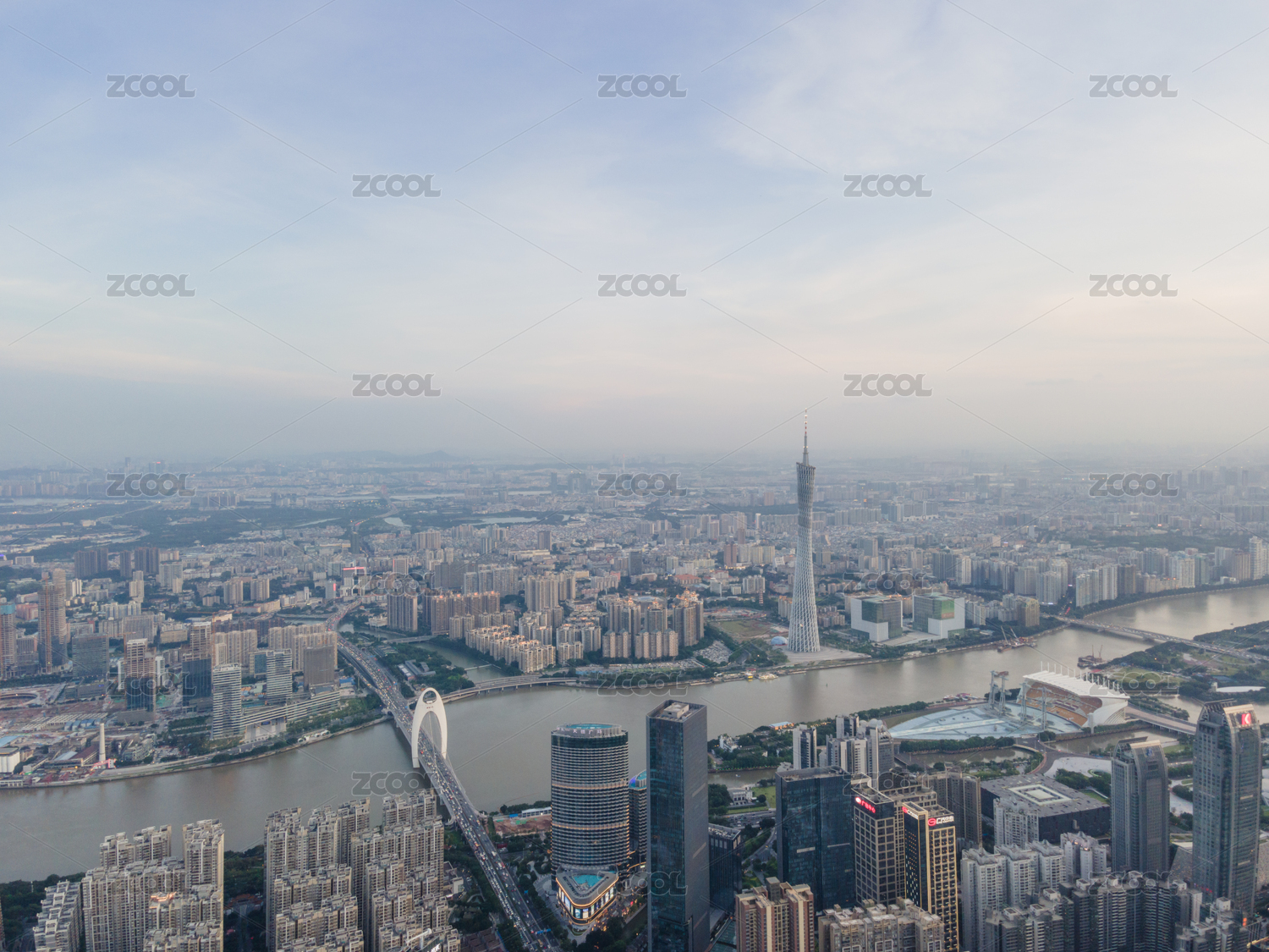 中国广东省广州琶洲金融商务区建筑群和城市天际线