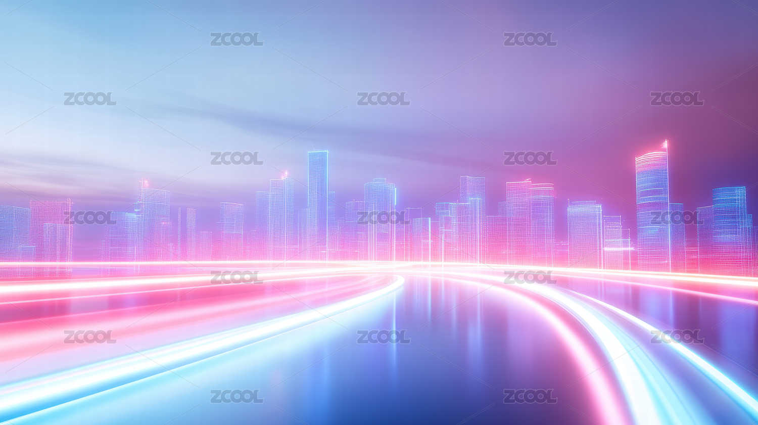 五彩缤纷的天际线发光道路多彩城市生活概念