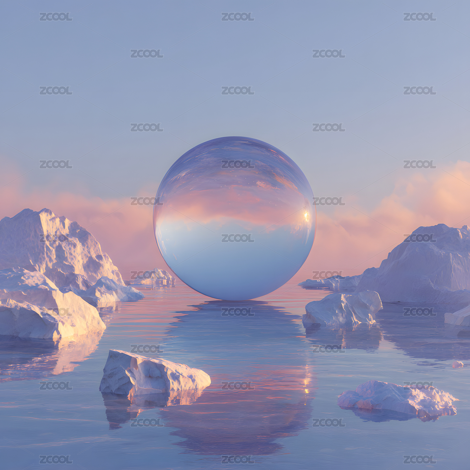冰山上的透明水晶球
