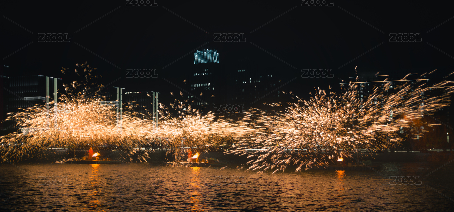 水上非遗“火壶”“打铁花”表演精彩绝伦