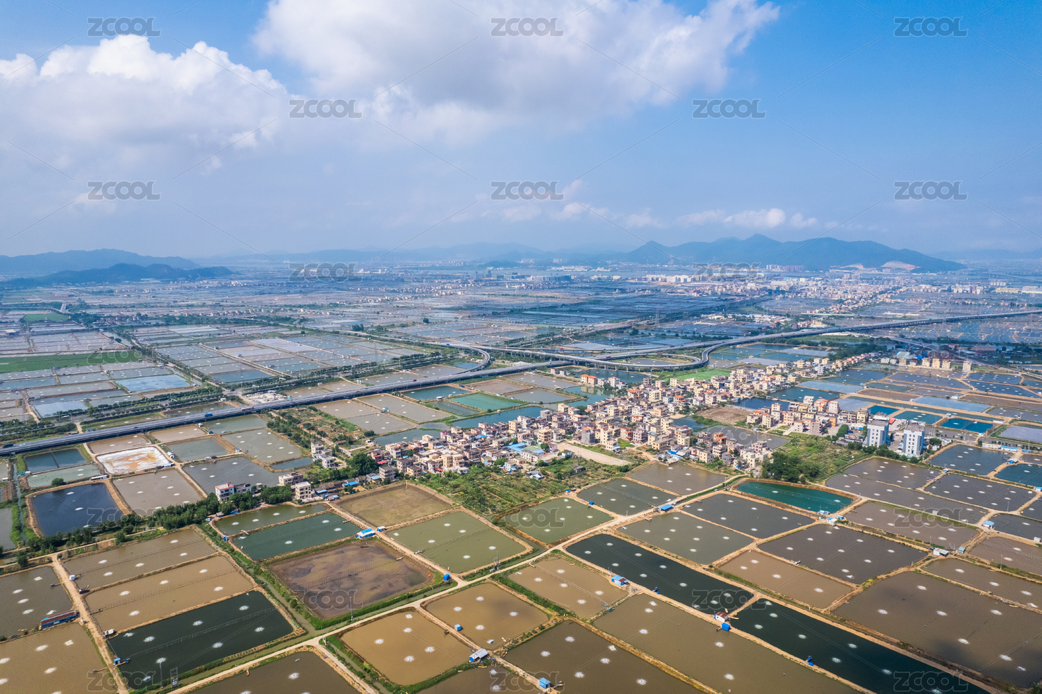 宁波市鄞州区咸祥镇水产养殖场和村落航拍