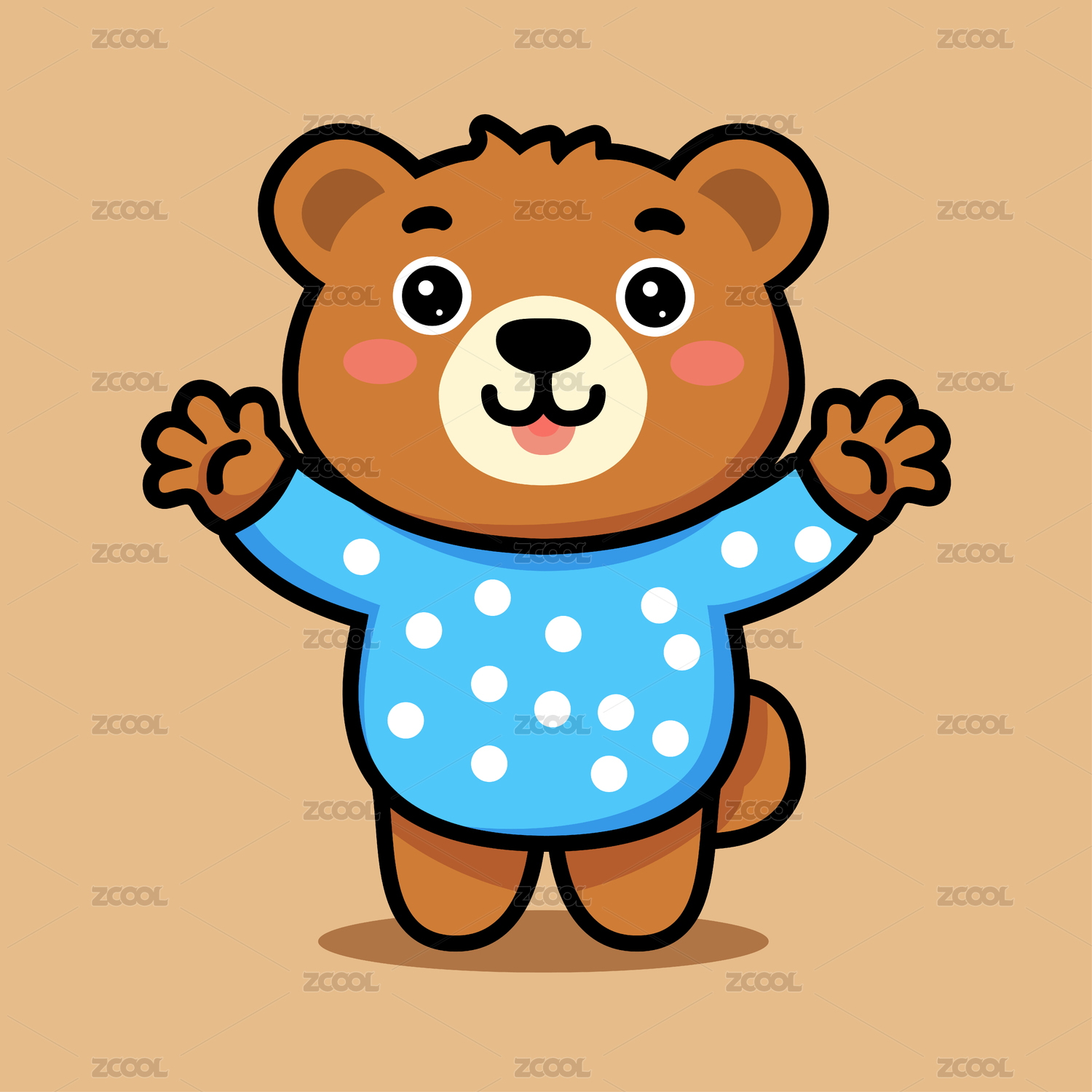 卡通矢量可爱穿衣服举手打招呼站立开心小熊