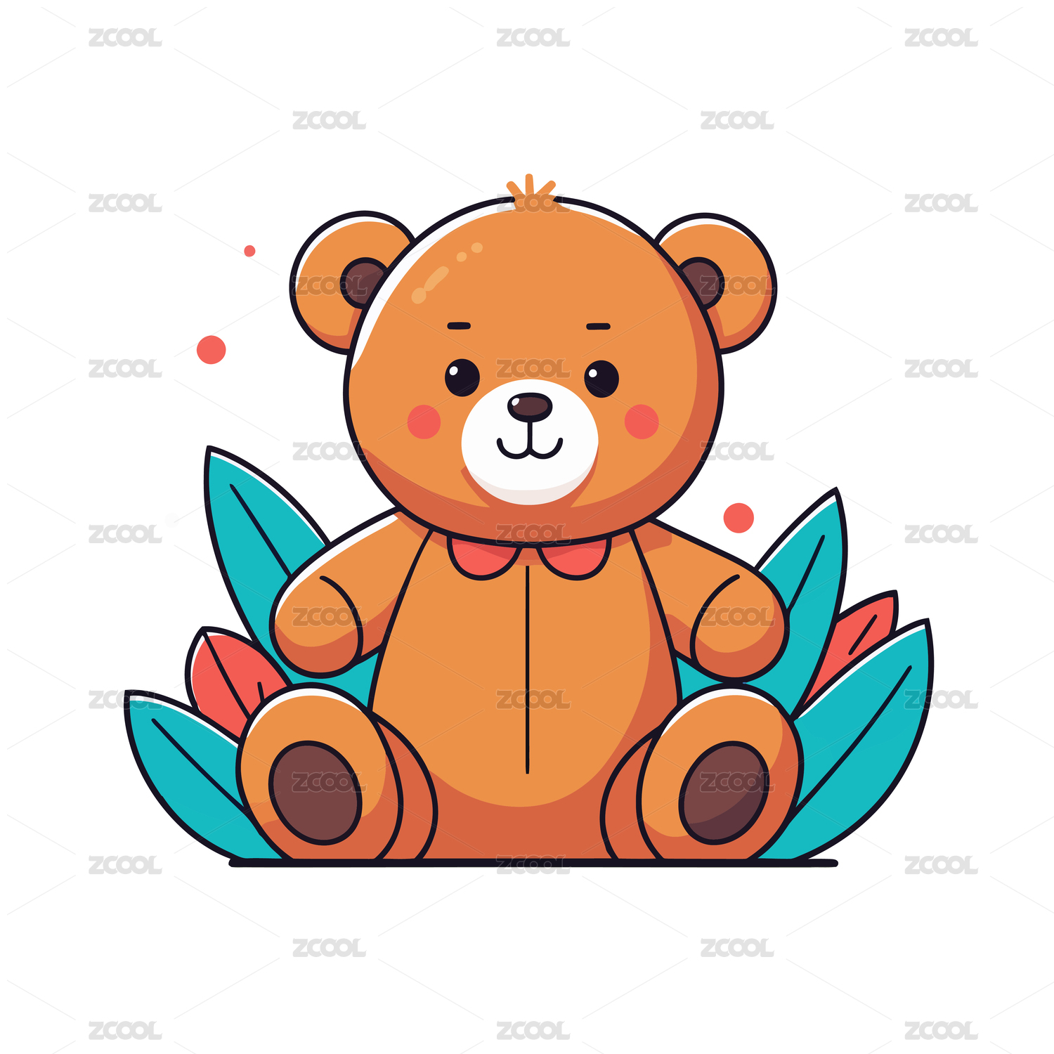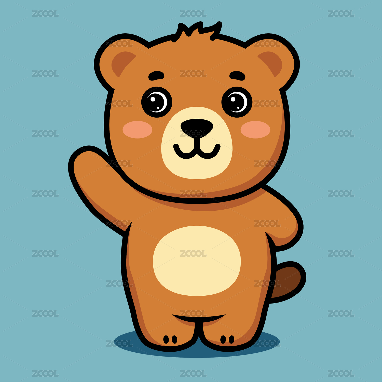 卡通矢量可爱插画动物举手打招呼站立小熊
