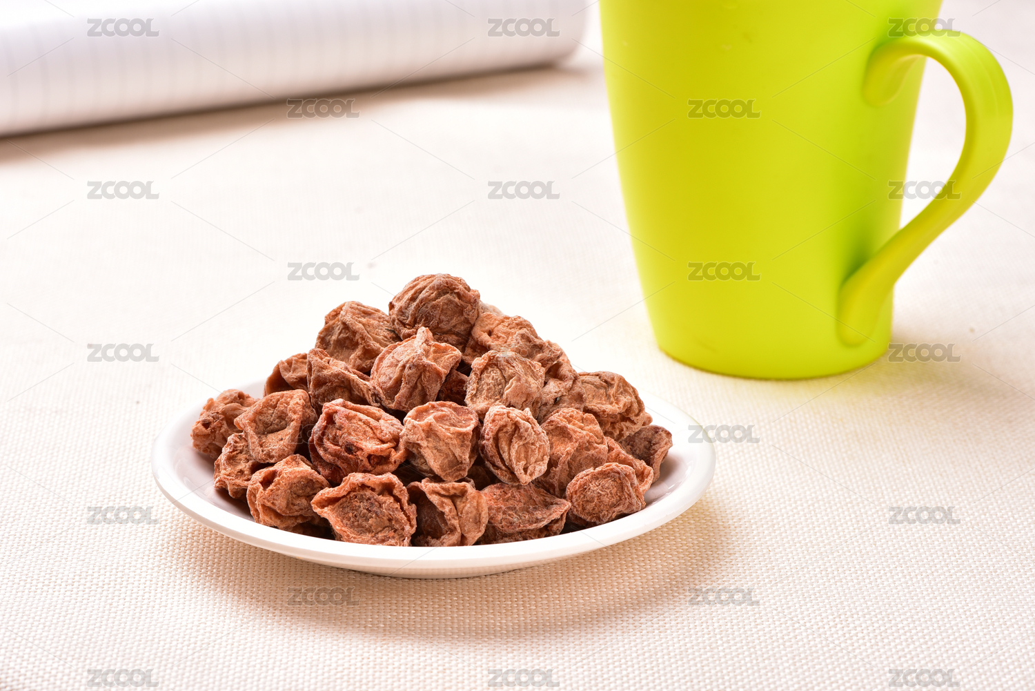 桌面上的盘子里的美味可口的巧克力鹰嘴豆片