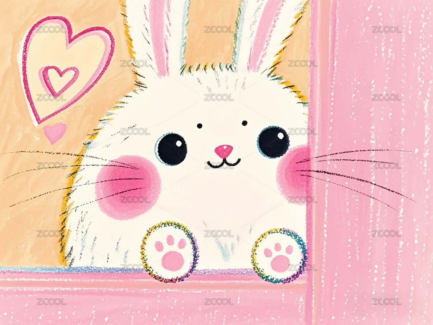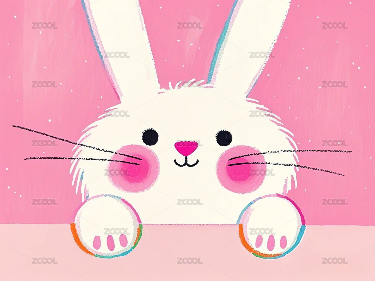 粉色,彩色,蜡笔,简笔画,生肖,可爱,卡通,兔年,兔,兔子