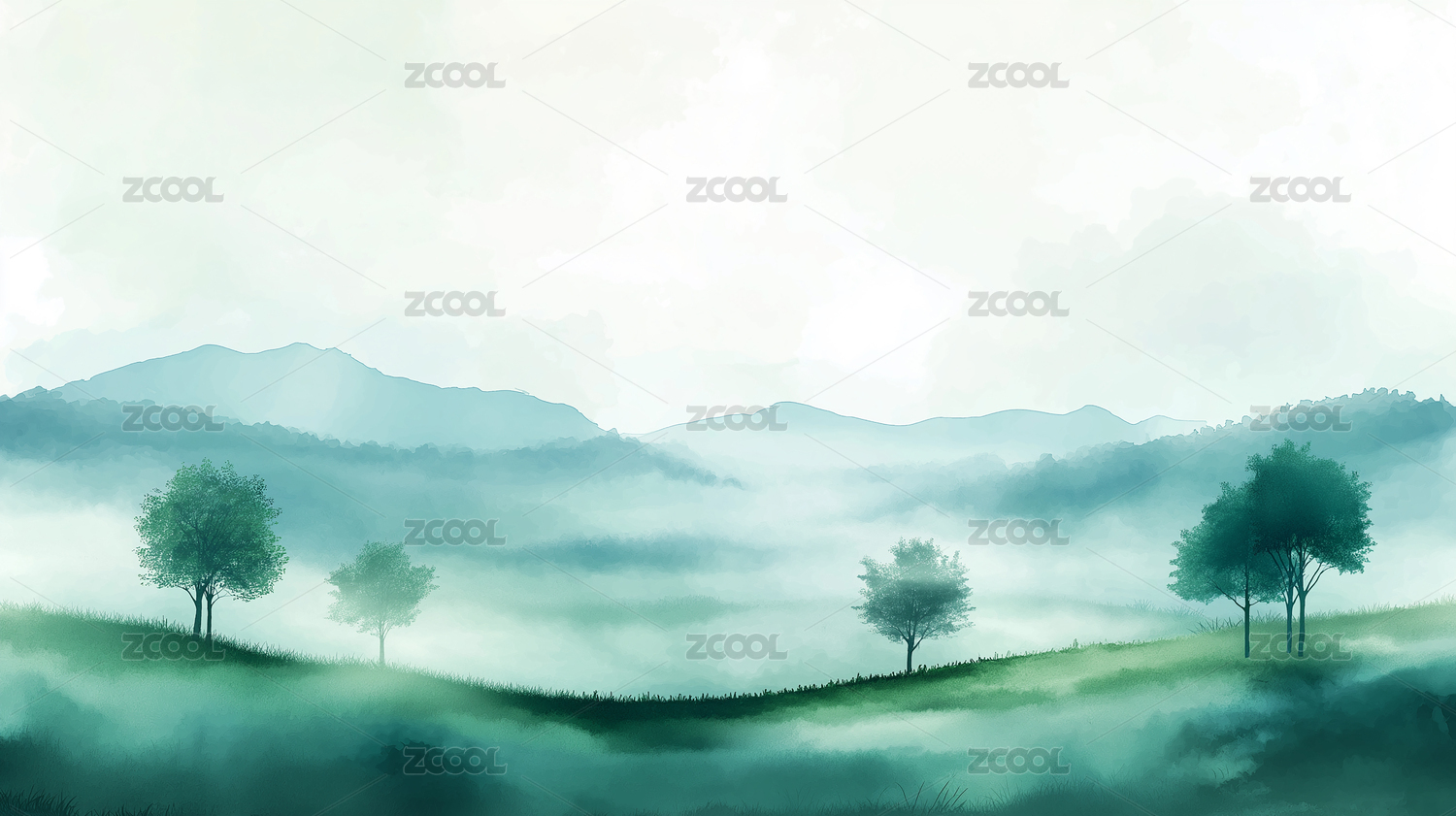 山间朦胧插画