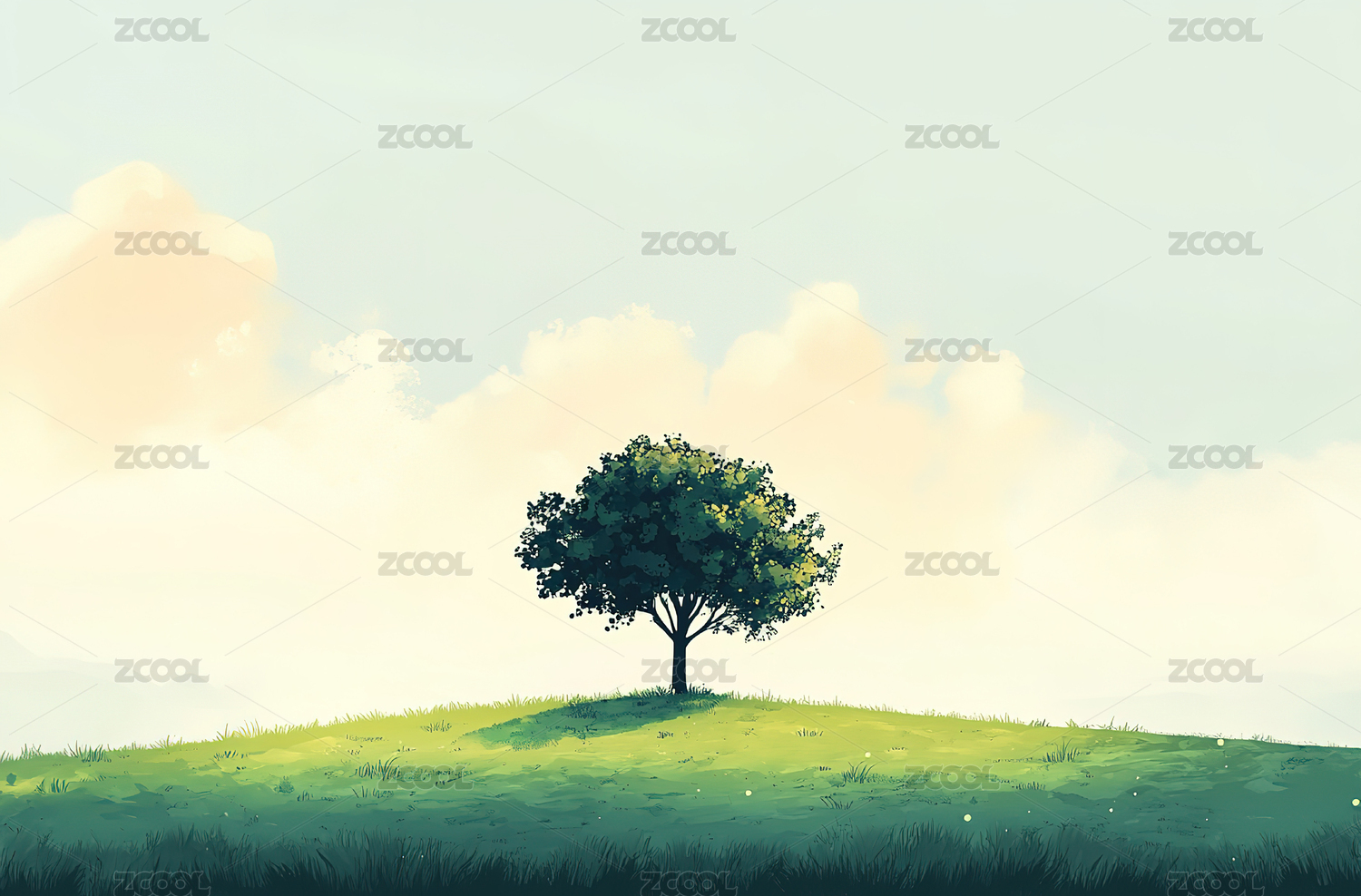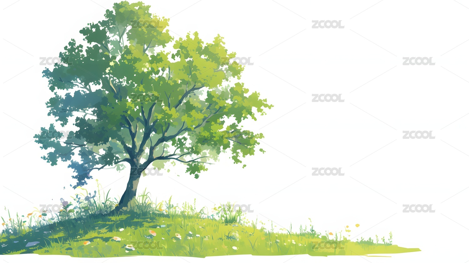 绿色草地上的一棵树插画