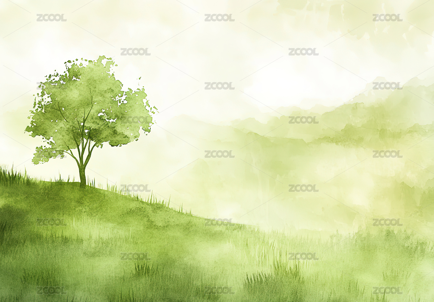极简水彩树木绿色背景插画