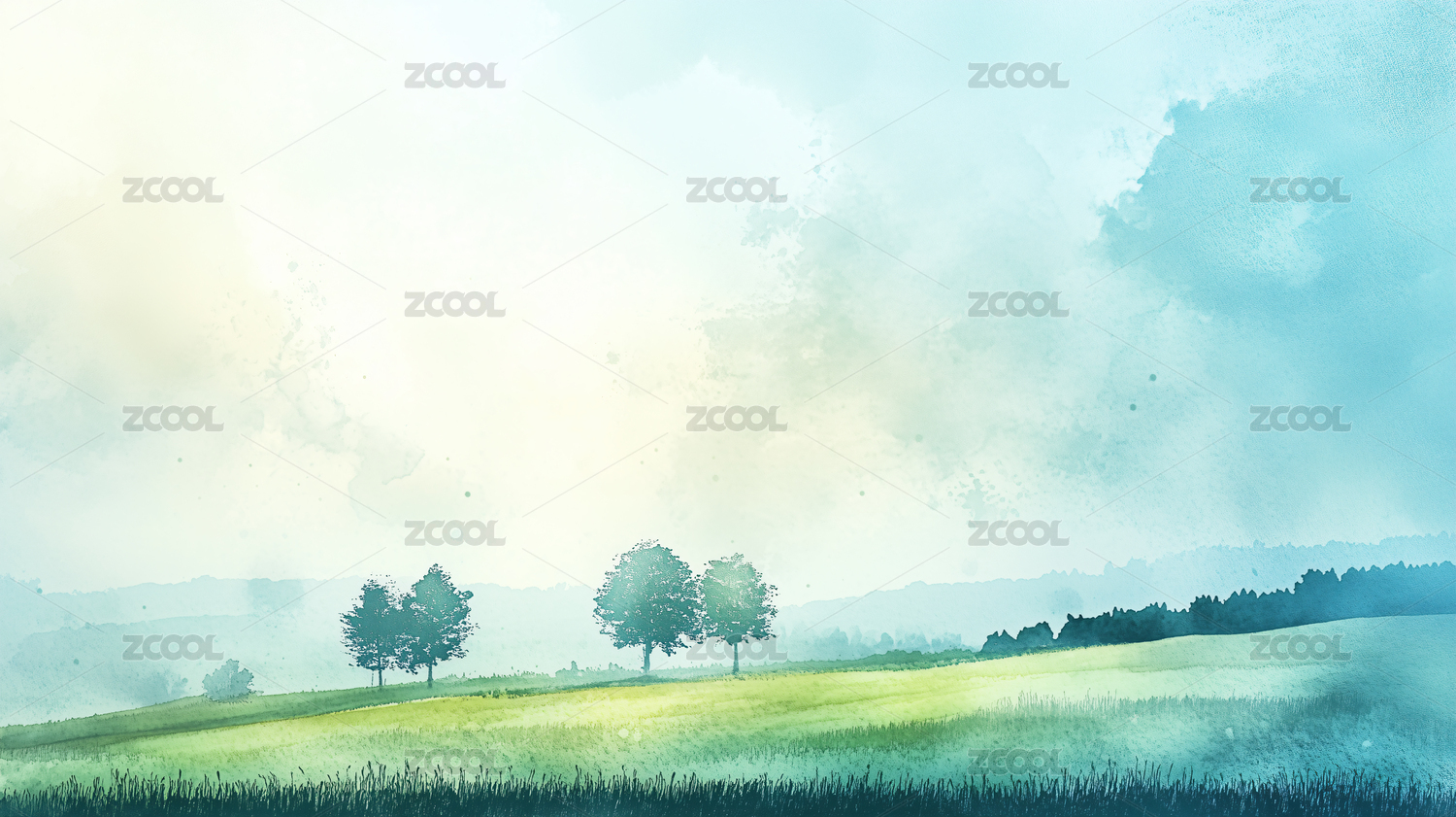 水彩风格田野绘画