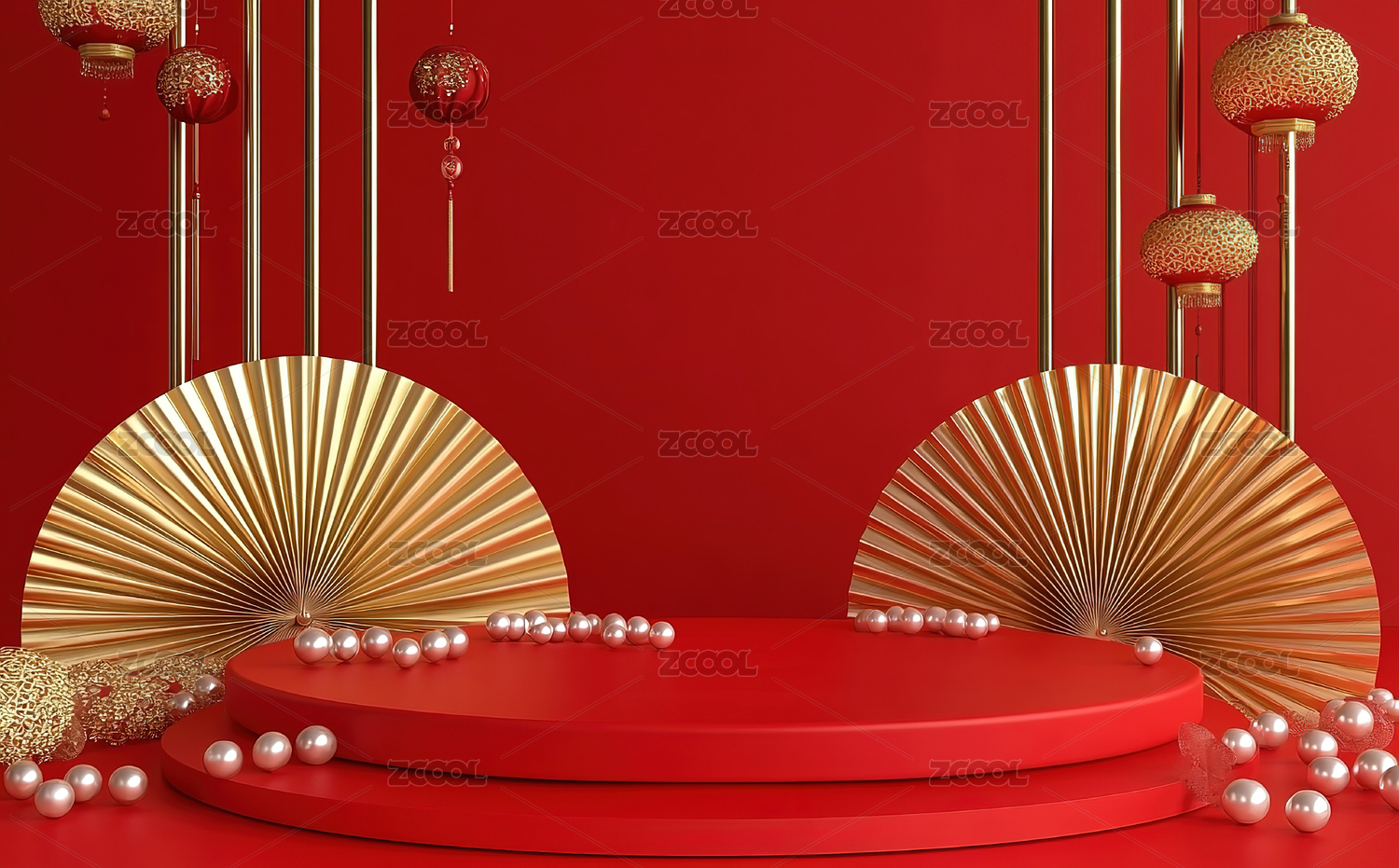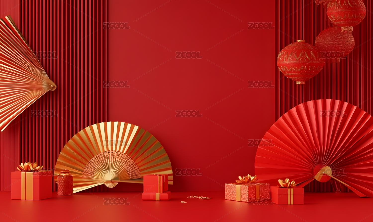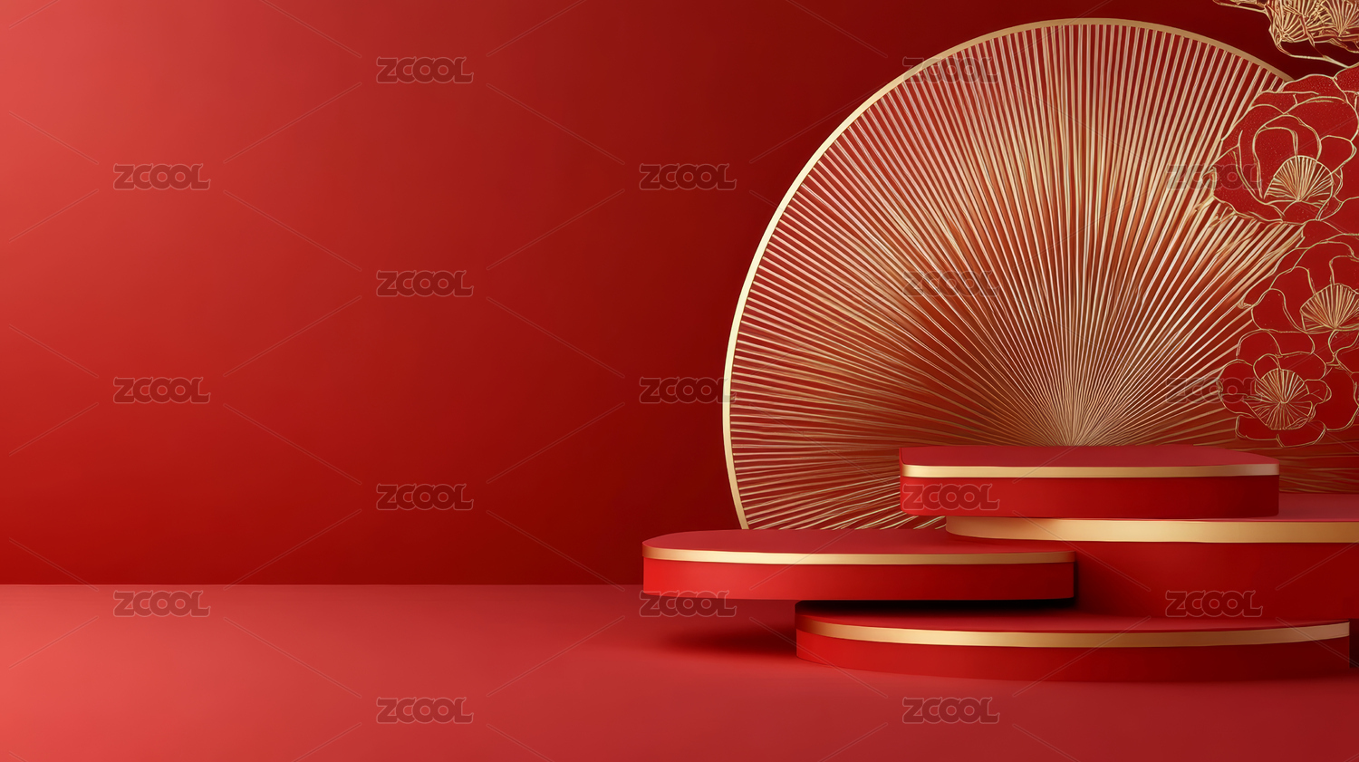 红色背景节日主题电商产品展台