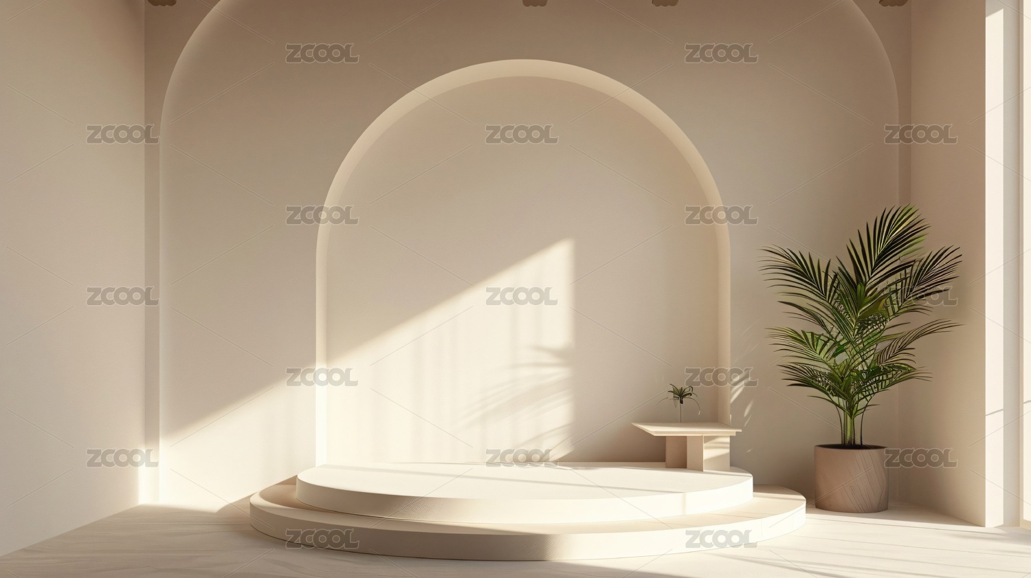 极简拱门绿植场景3D电商产品展台