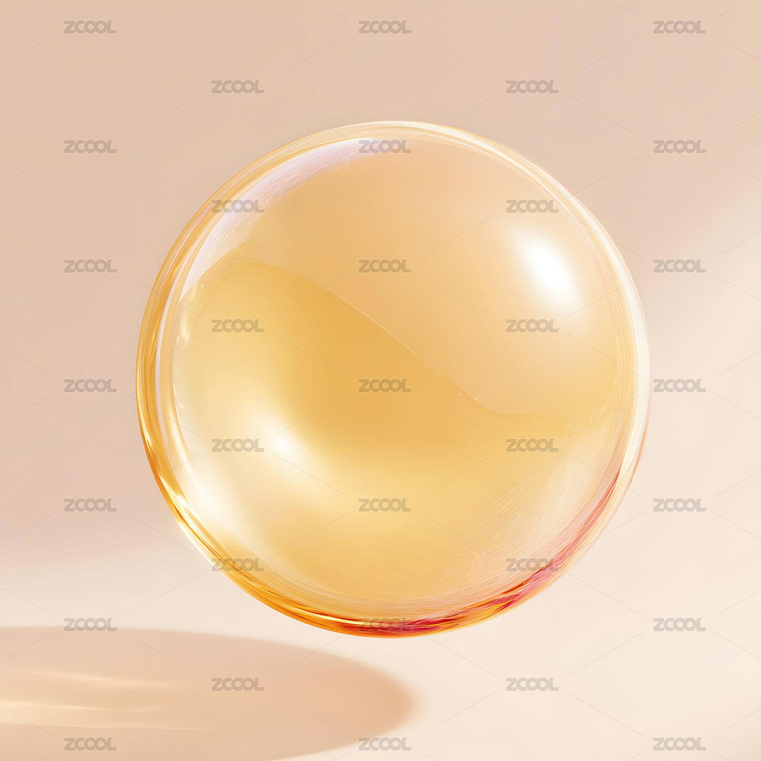 金色液体中透明球体场景