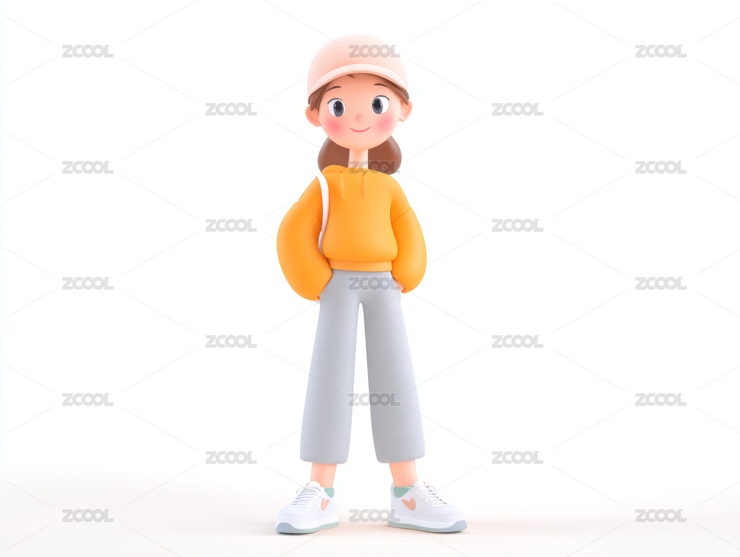可爱的金发女孩拿着雨伞走路3D插画素材