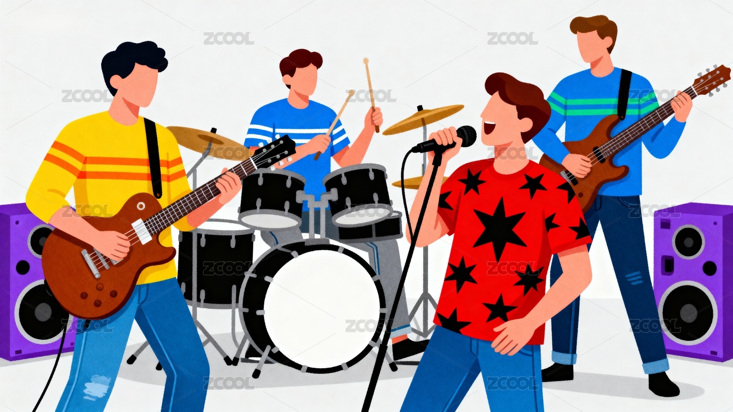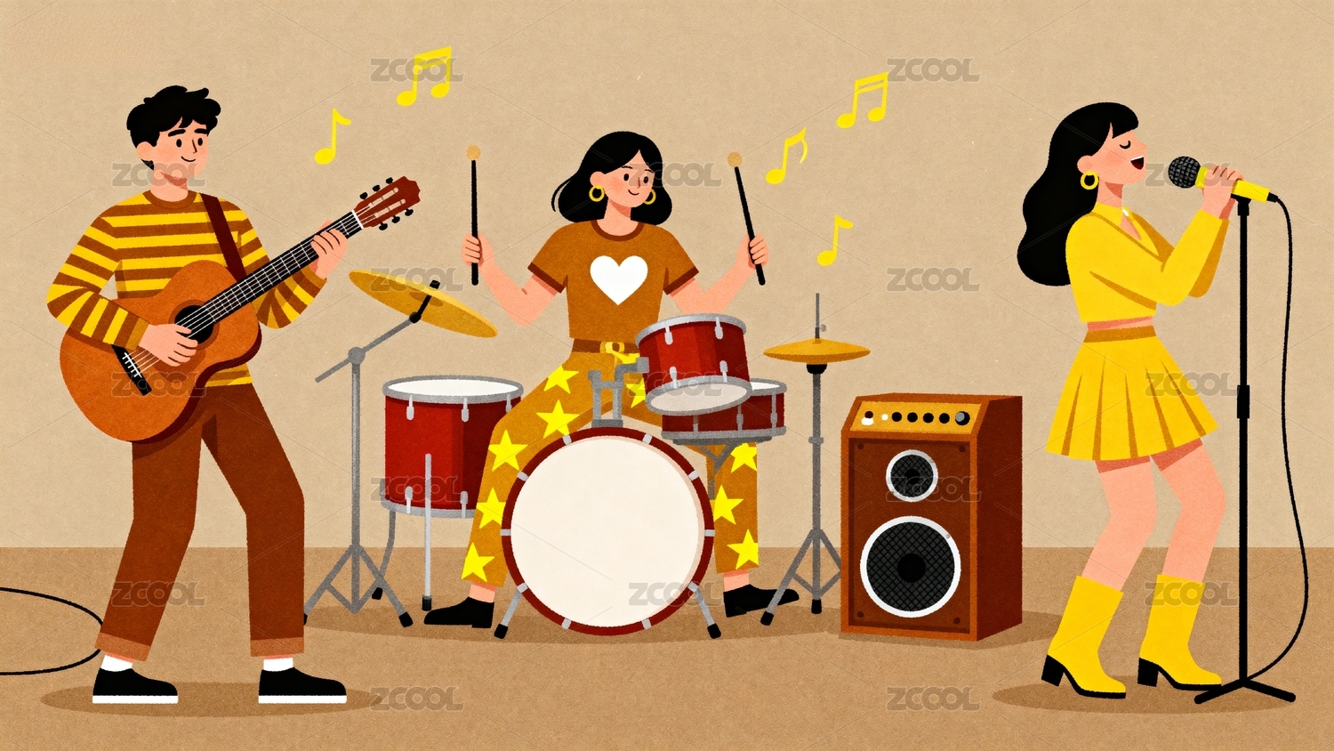 音乐人,演奏,演唱,歌手,叶子,衣服,麦克风,音箱,吉他,架子鼓