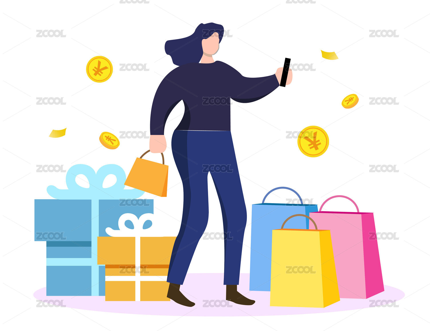 扁平风格女人手机购物矢量插画