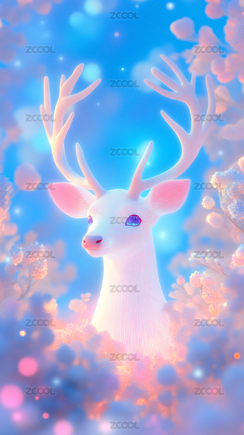 超现实唯美插图鹿