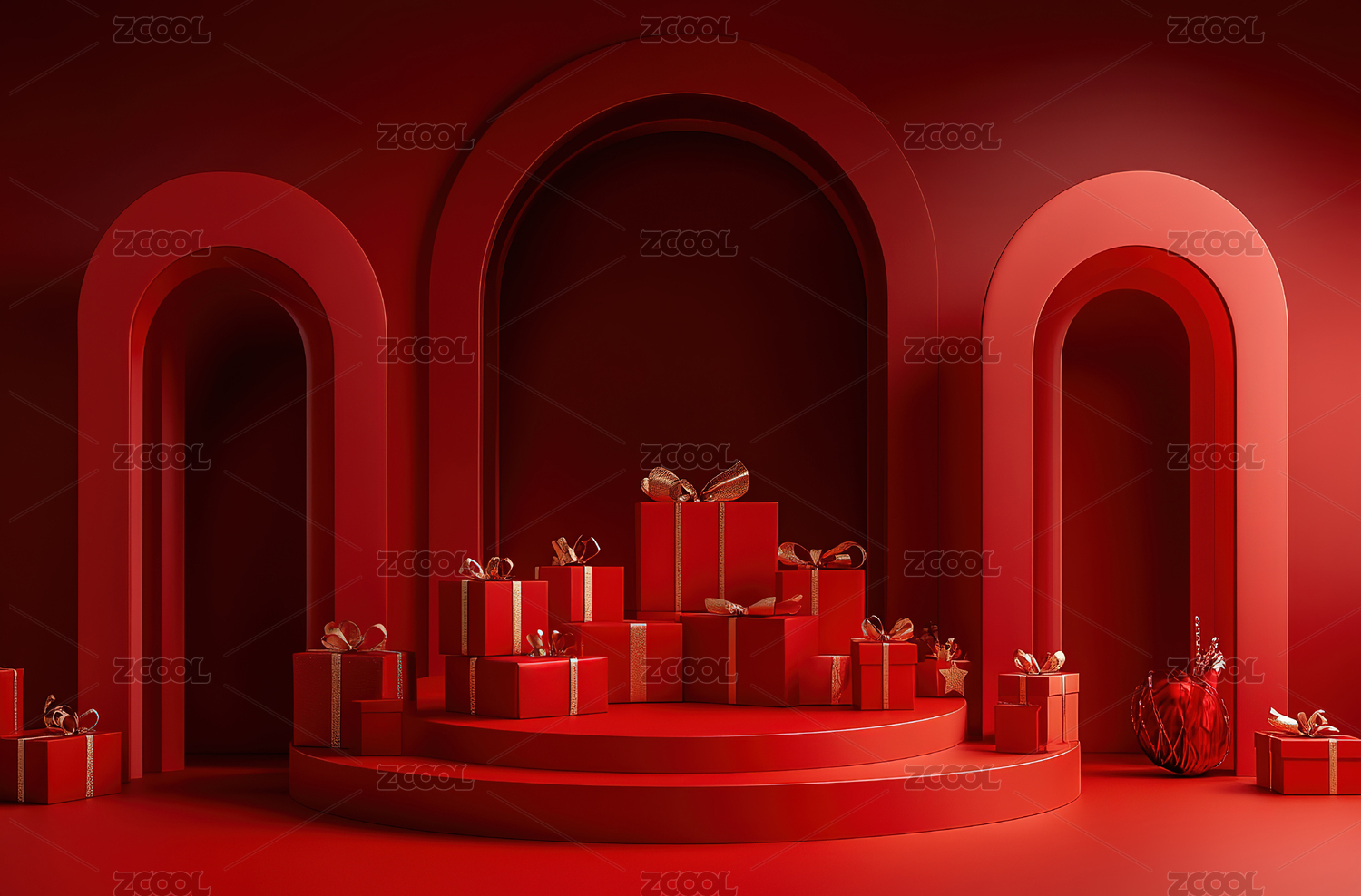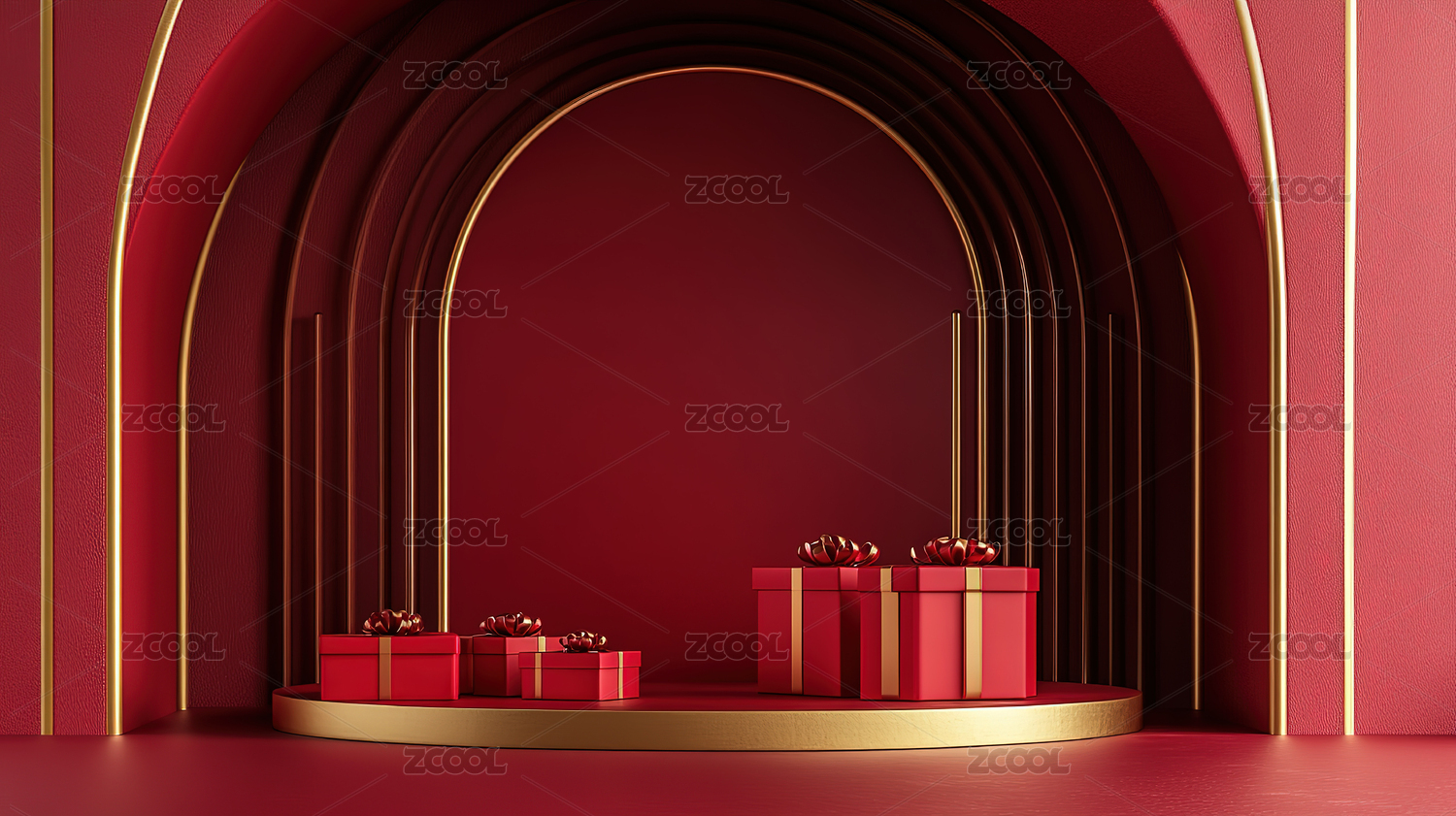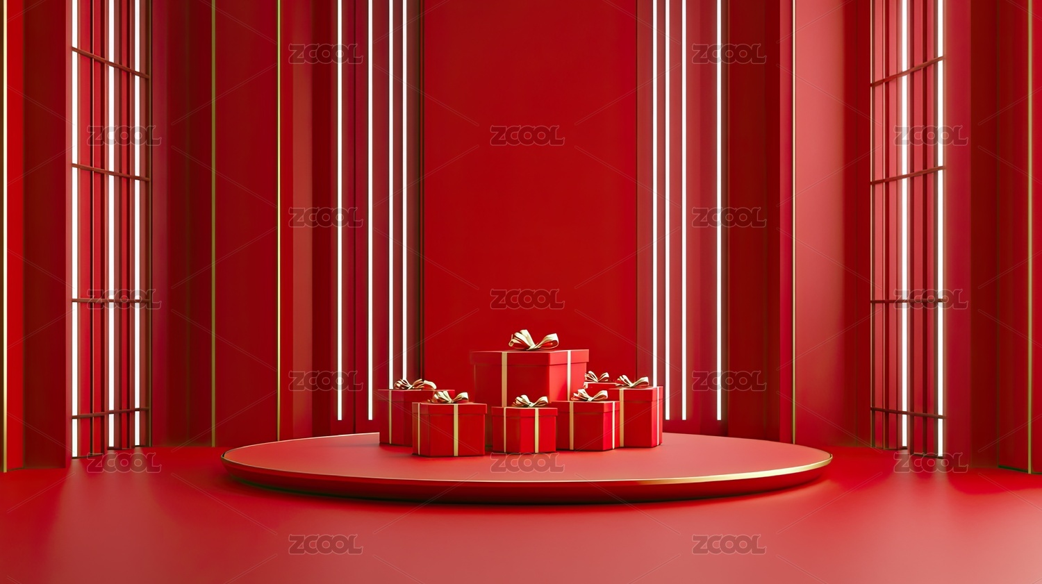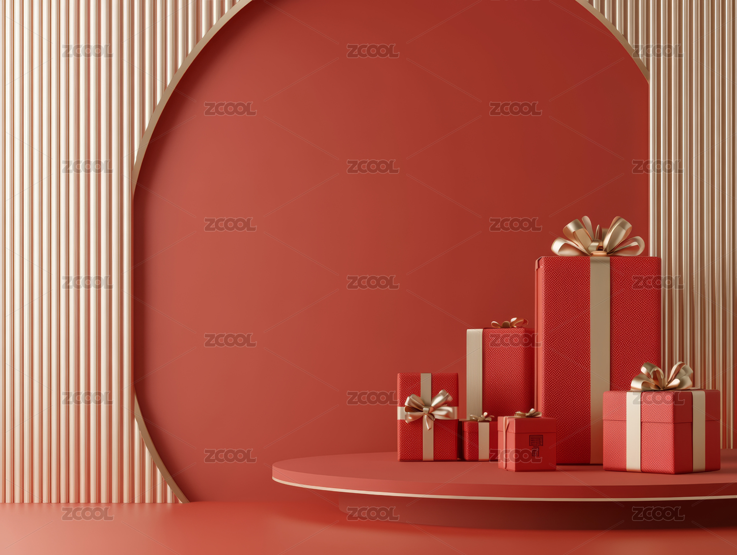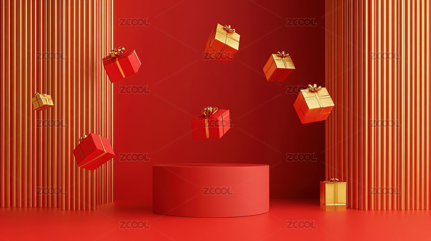 中国红礼盒堆电商产品展示背景
